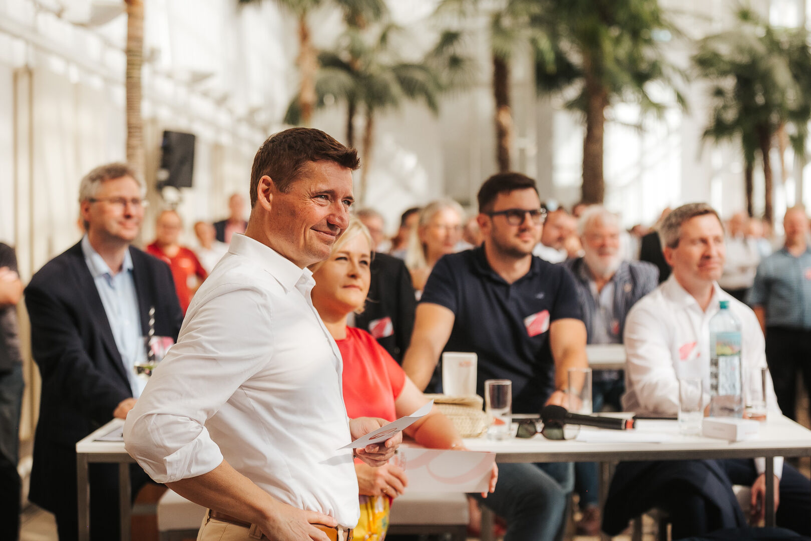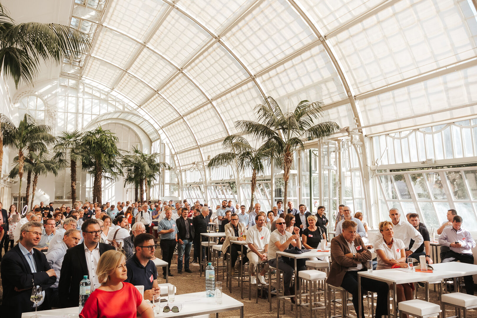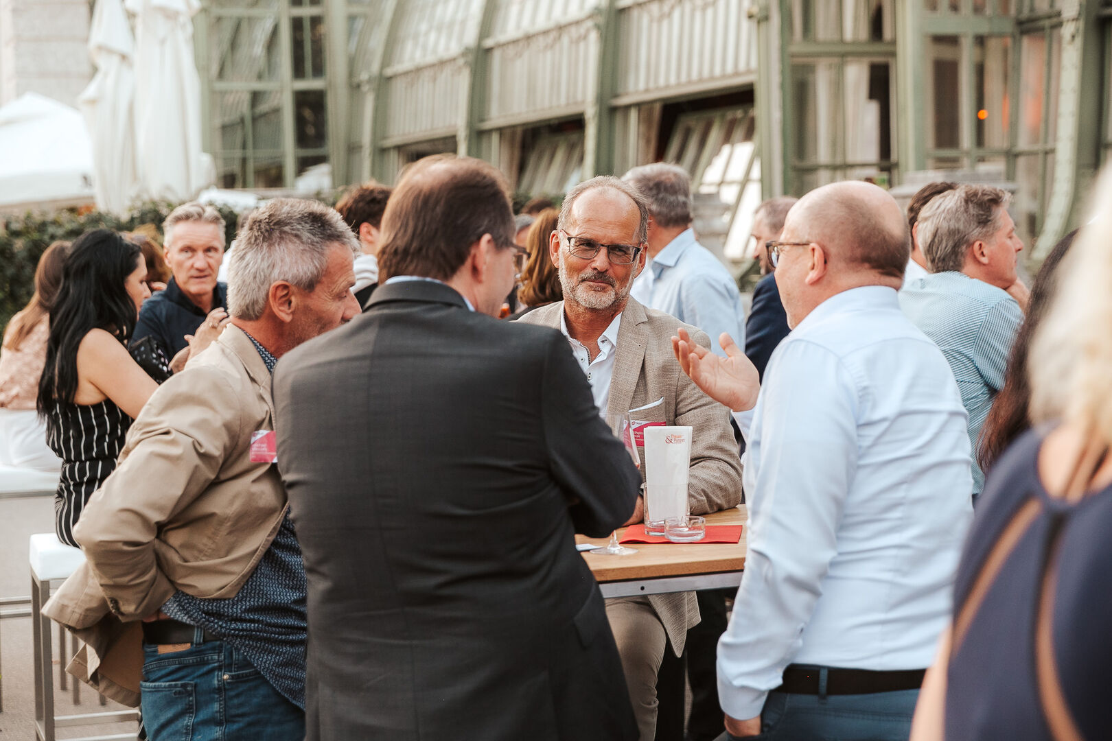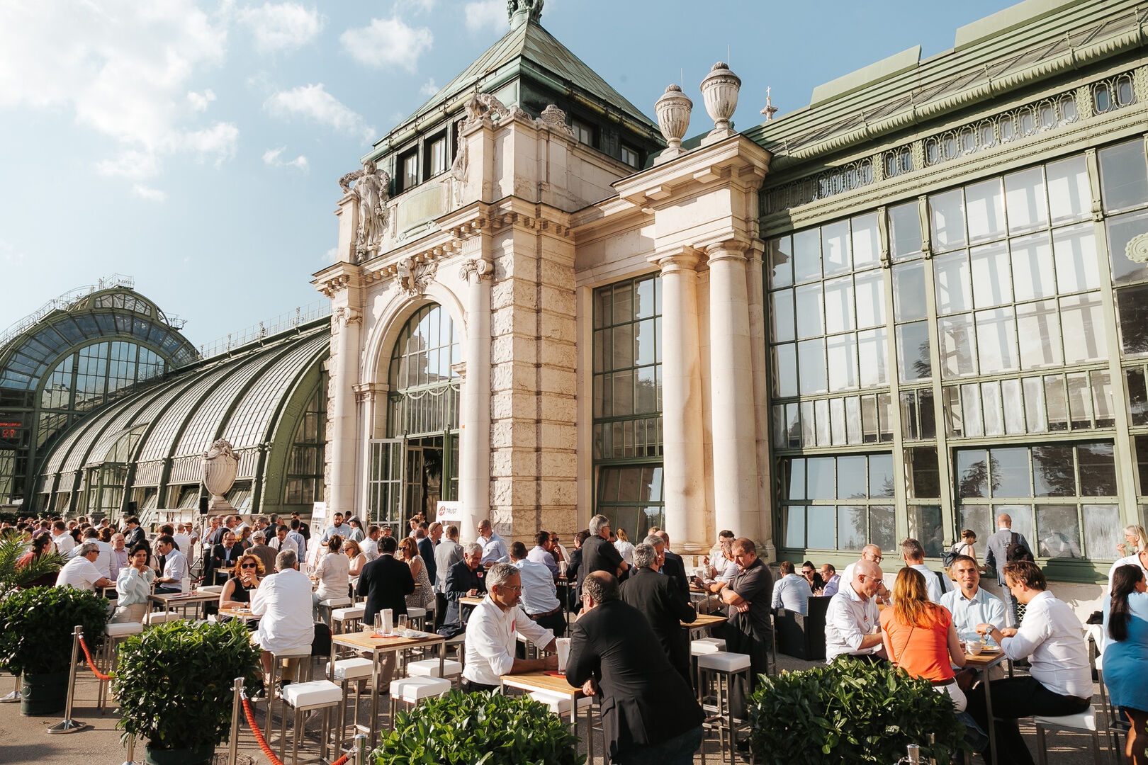 Das Sommerfest stand diesmal, der Location angemessen, unter dem Motto "Networking unter Palmen". Den Einstieg in den Abend übernahmen die Geschäftsführer von A-Trust, CEO Markus Vesely und CFO Sven Glöckner.