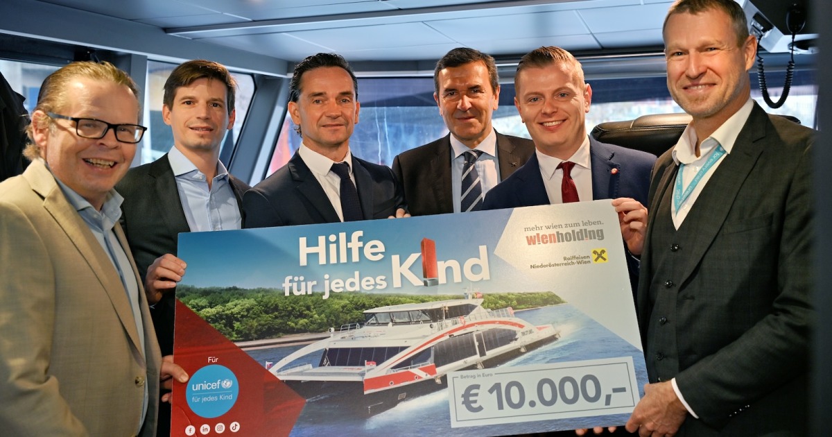 Nun wurde der Spendenscheck für 2025 von Gemeinderat Denis Šakić, Wien Holding-Geschäftsführer Kurt Gollowitzer, Raiffeisenlandesbank NÖ-Wien Generaldirektor-Stellvertreter Reinhard Karl und den Central Danube-Geschäftsführern Gerd Krämer und Severin Leopold an den Geschäftsführer von UNICEF Österreich, Christoph Jünger, überreicht.