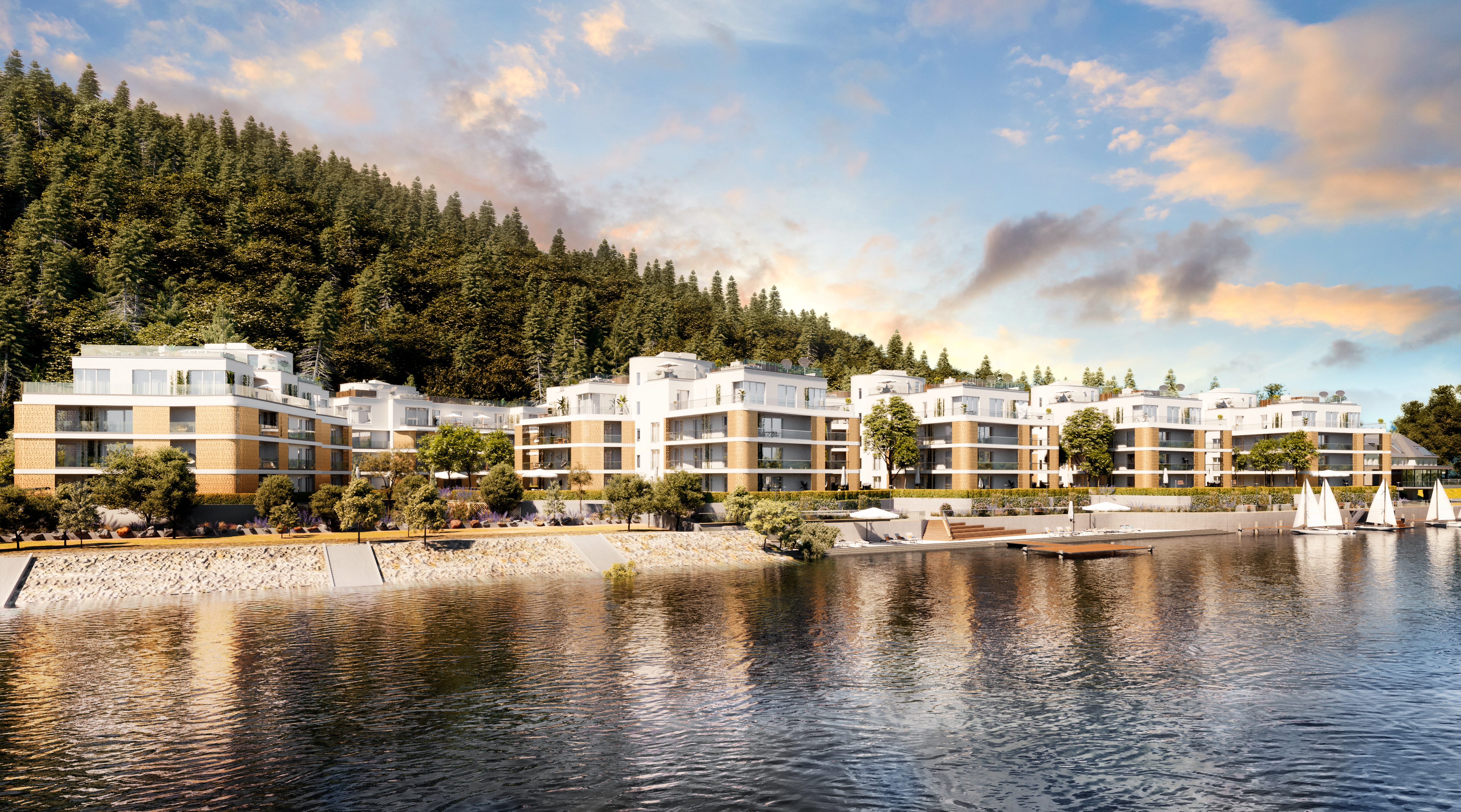Filetstückerl am Immobilienmarkt sind mittlerweile rar geworden. Die WK Development hat sich mit dem Projekt „The Shore“ im Kuchelauer Hafen dennoch eines der letzten freien Platzerl am Wiener Donaustrand sichern können und baut dort in Döbling zehn Luxus-Villen. Im Erdgeschoss geht es gleich in den eigenen Garten, von der Penthouse-Etage lockt der Blick auf Wald- und Wasserlandschaft. Das Innenleben: smart und energieeffizient. Der Service: mit Wellness-, Fitness- und Concierge-Service im High-End-Bereich. Für den Look der Anlage, der an die goldenen Gründerzeitjahren anknüpfen will, sorgt „Architektur Consult“.