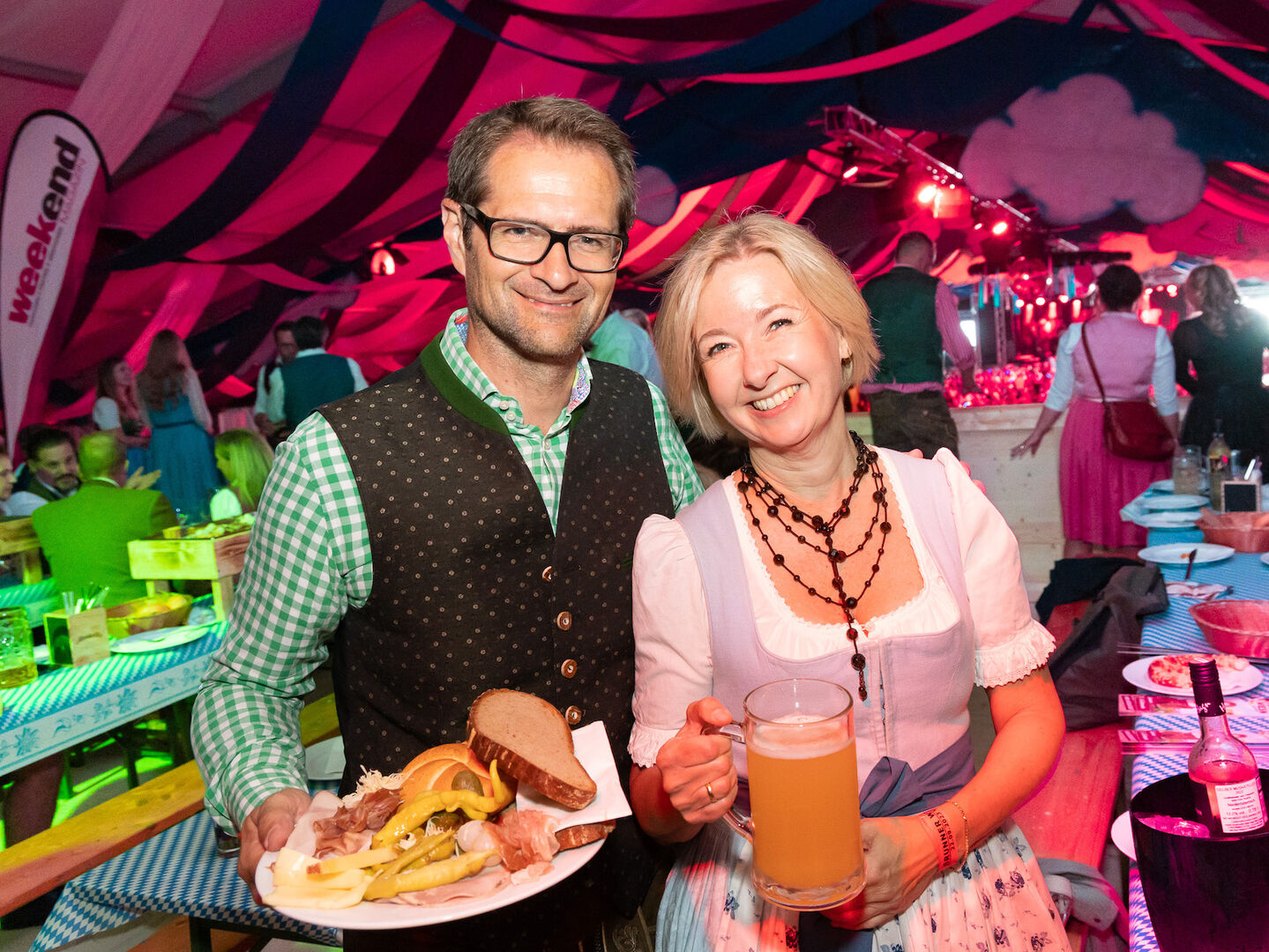 Die tolle Stimmung im Festzelt übertrug sich auch auf die Weekend VIP Galerie. wo die Gäste nicht nur mit Bier und anderen Getränken, sondern auch mit Wiesn-typischen Schmankerln verwöhnt wurden.