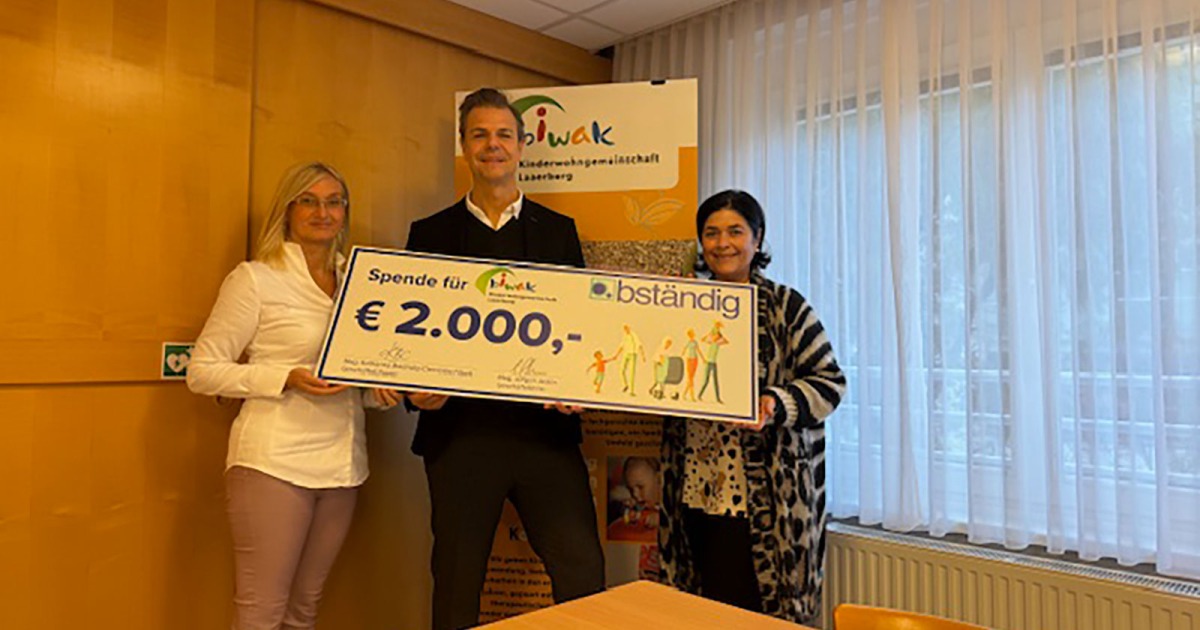 Bei der stimmungsvollen Übergabe war allen Beteiligten die Freude ins Gesicht geschrieben. Mag. Jürgen Jester und sein Team zeigten sich glücklich, mit ihrer großzügigen Spende in der Höhe von 2.000 Euro einer sinnstiftenden Einrichtung einen wertvollen Dienst erweisen zu können. Doris Paul (Wirtschaftliche Leitung) und Rosemarie Knoth (Pflegerische/Pädagogische Leitung) von BIWAK nahmen den Scheck voller Dankbarkeit entgegen. Denn dank Spenden wie diesen können sie ihre wertvolle Arbeit im Dienste anderer auch in Zukunft fortsetzen.