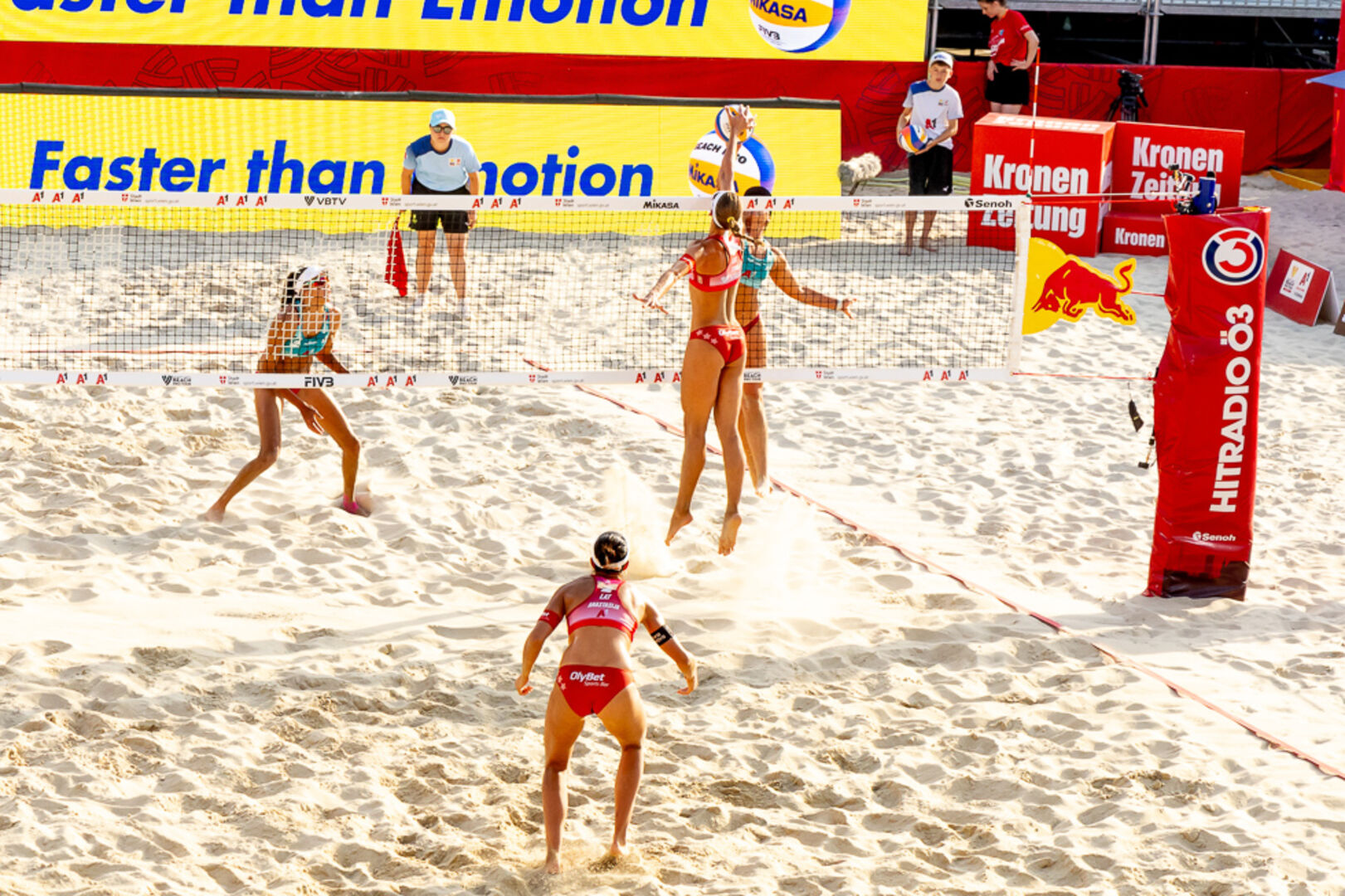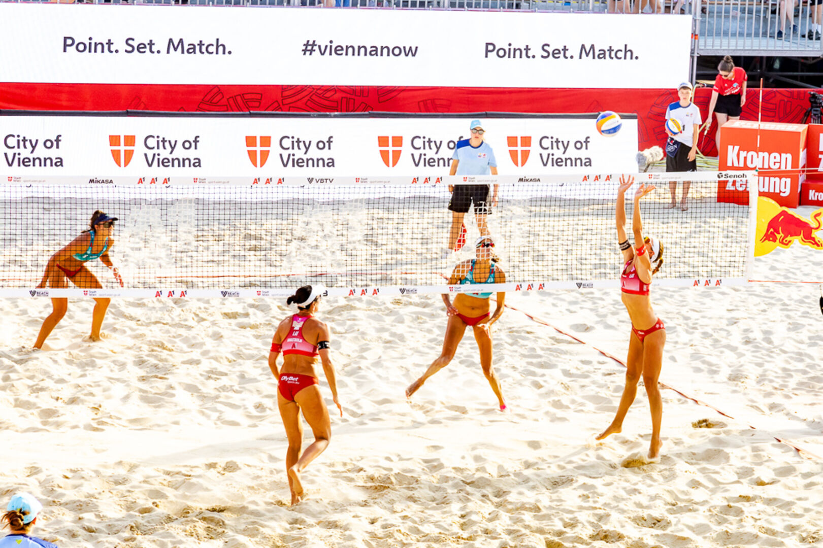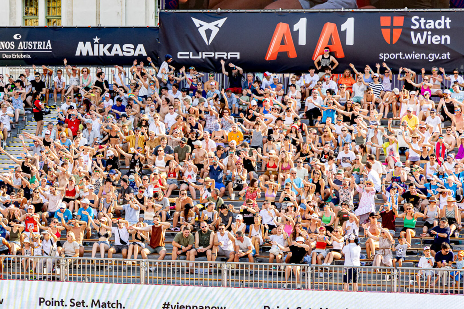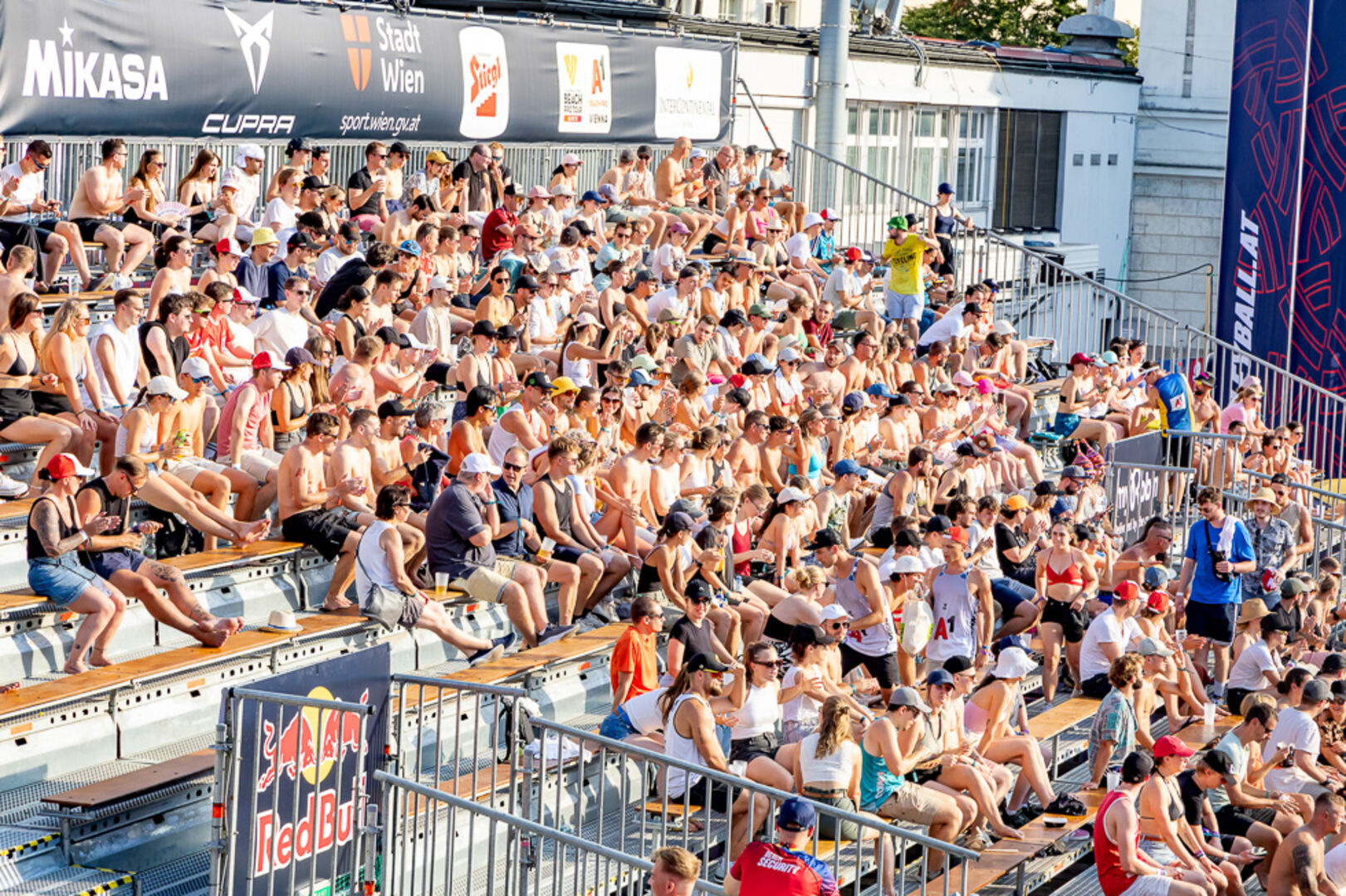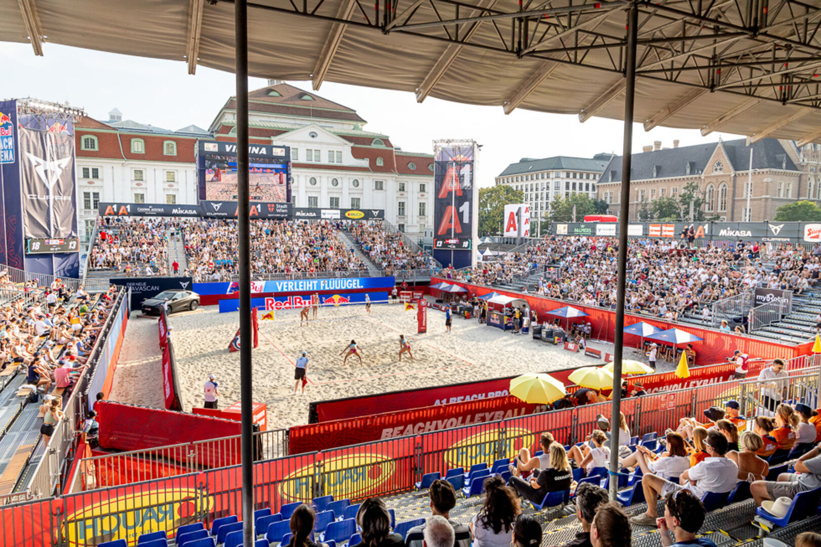 Die weltbesten Teams im Beachvolleyball spielen am Wiener Heumarkt um 280.000 Euro Preisgeld. 4.000 Fans passen in das Pop-up-Stadion in der Wiener Innenstadt und machen dort mächtig Wirbel.