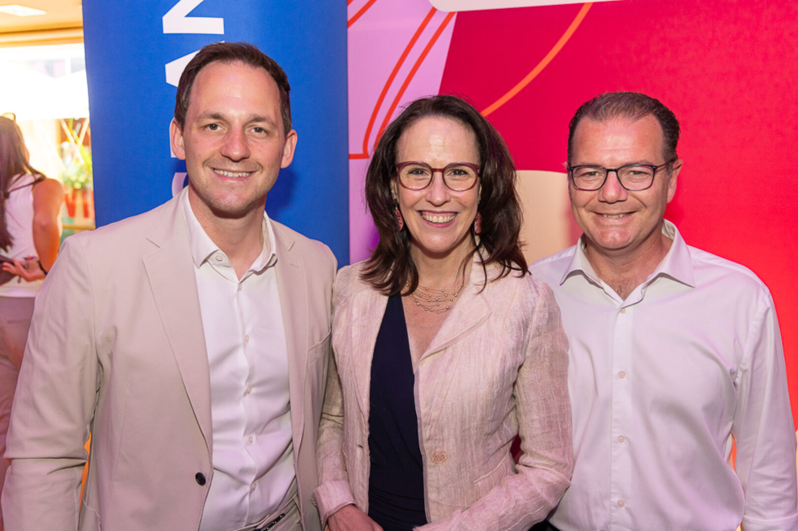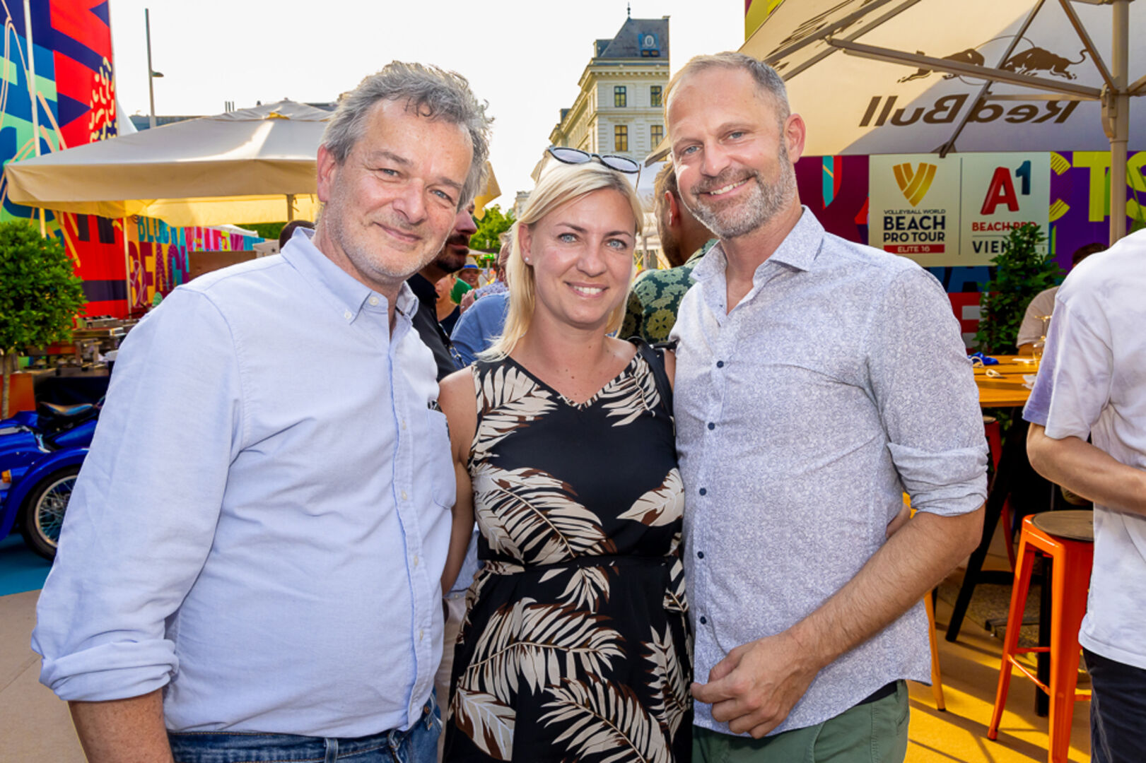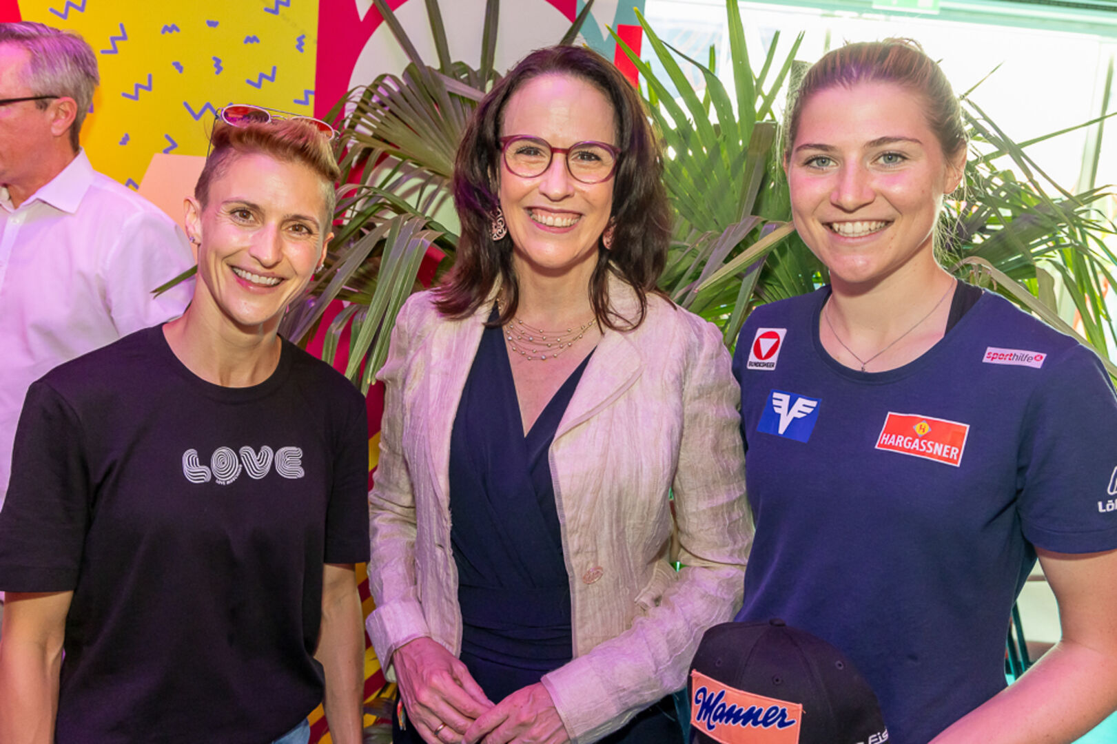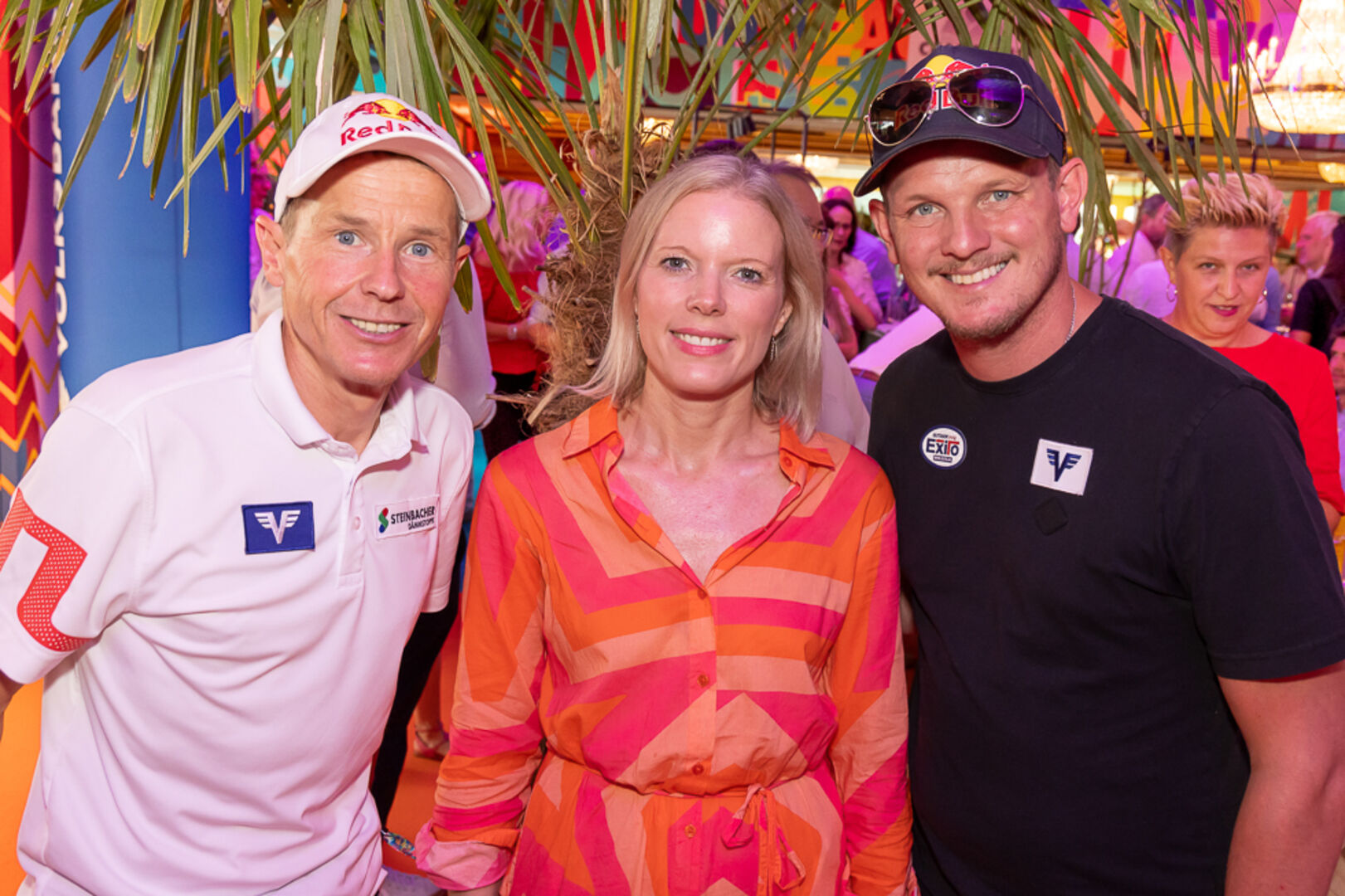 Volksbank Kommunikationschef Wolfgang Layr und Marketingleiterin Sonja Schörgenhofer hatten einen besonderen Coup "gelandet": Auch Mitglieder des aktuell erfolgreichen ÖSV-Skisprungteams gaben sich gut gelaunt am Wiener Heumarkt die Ehre.