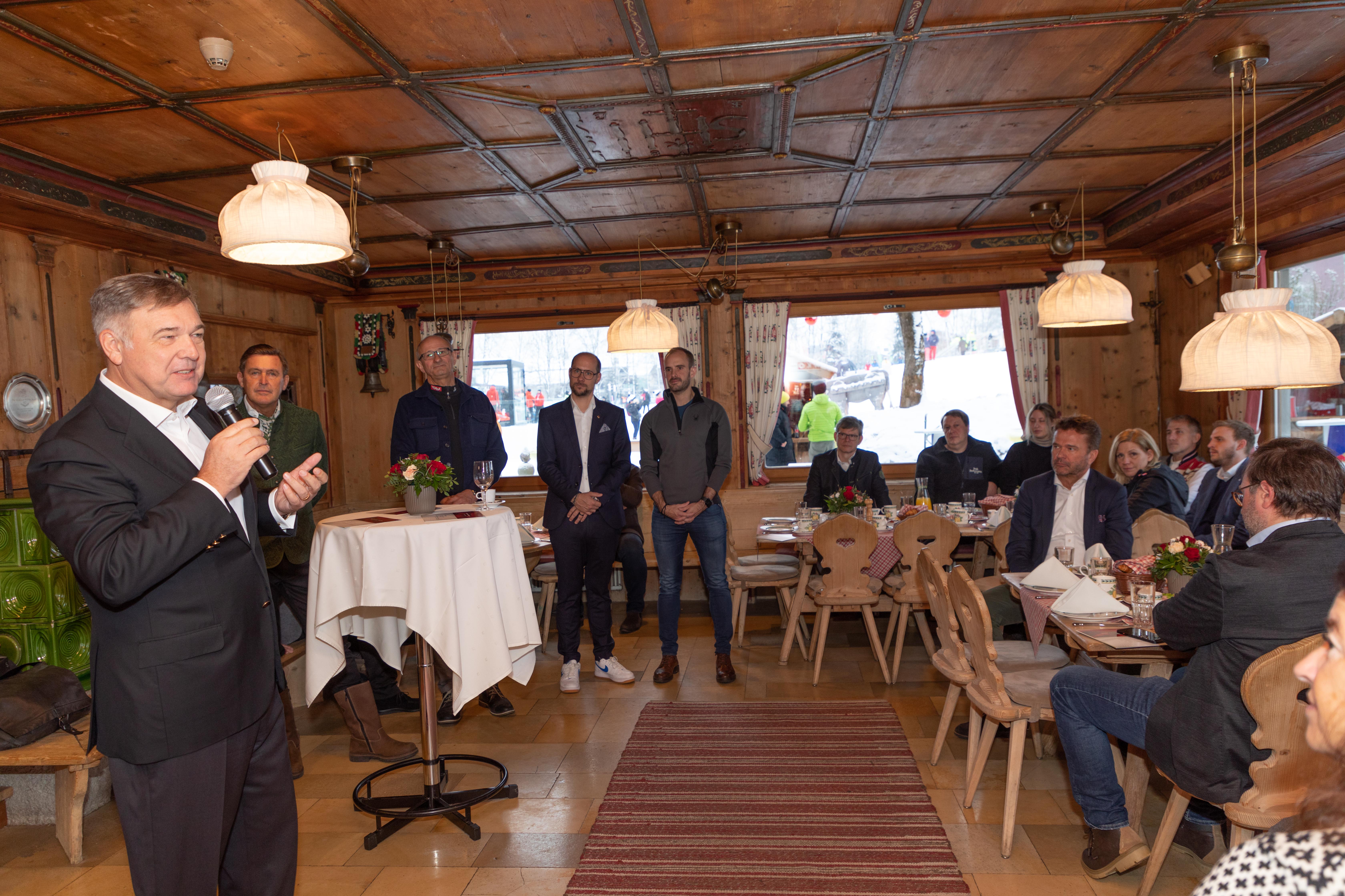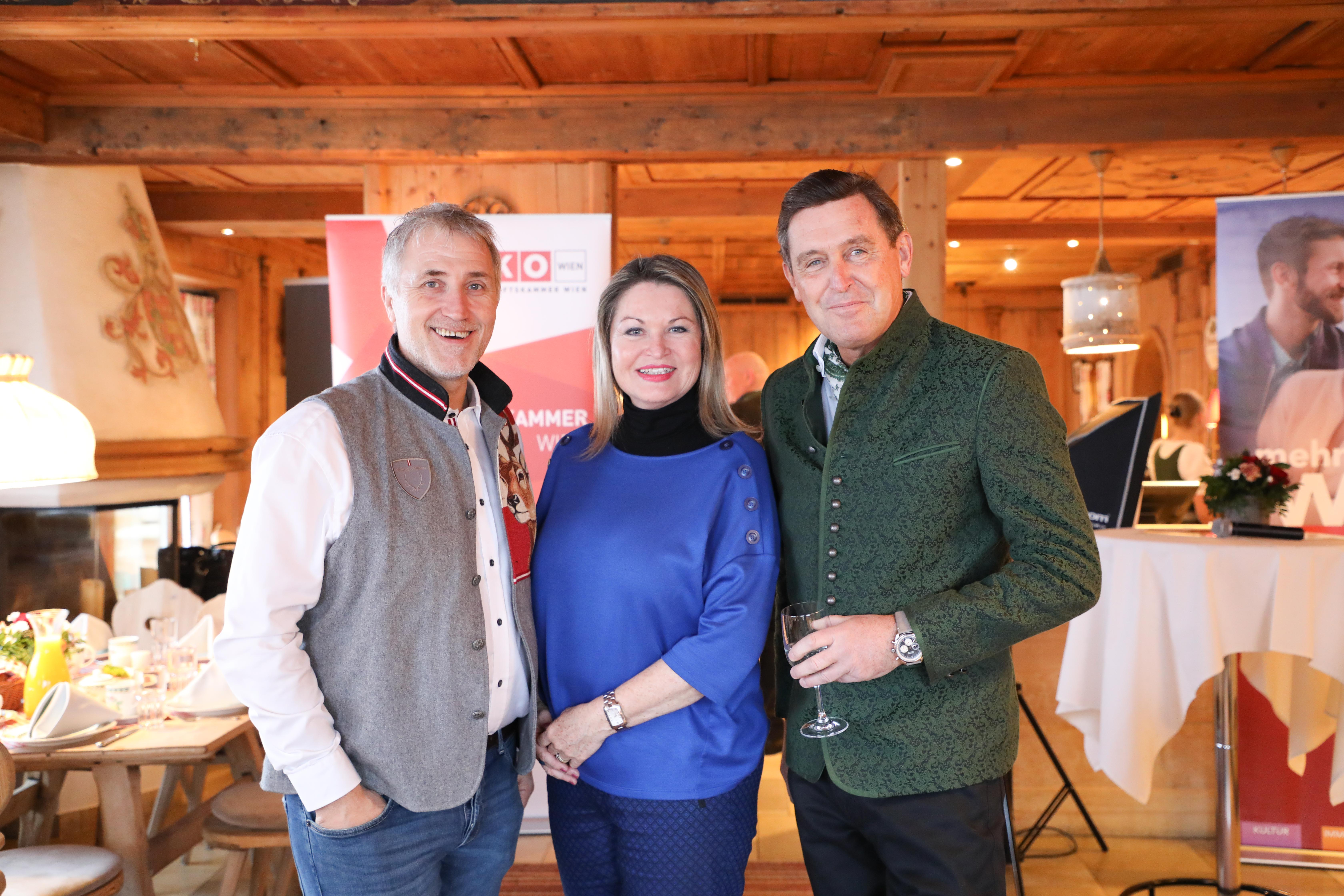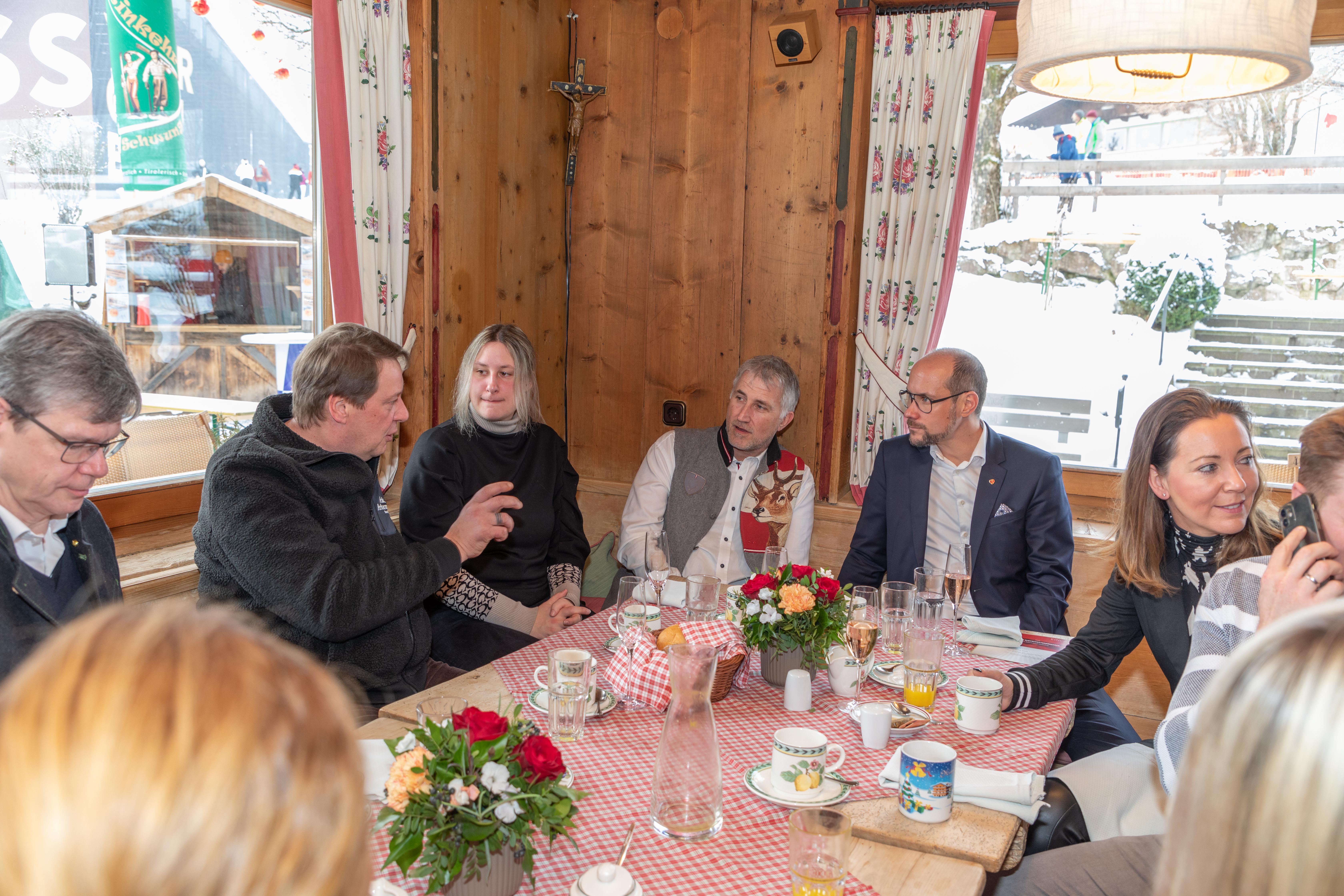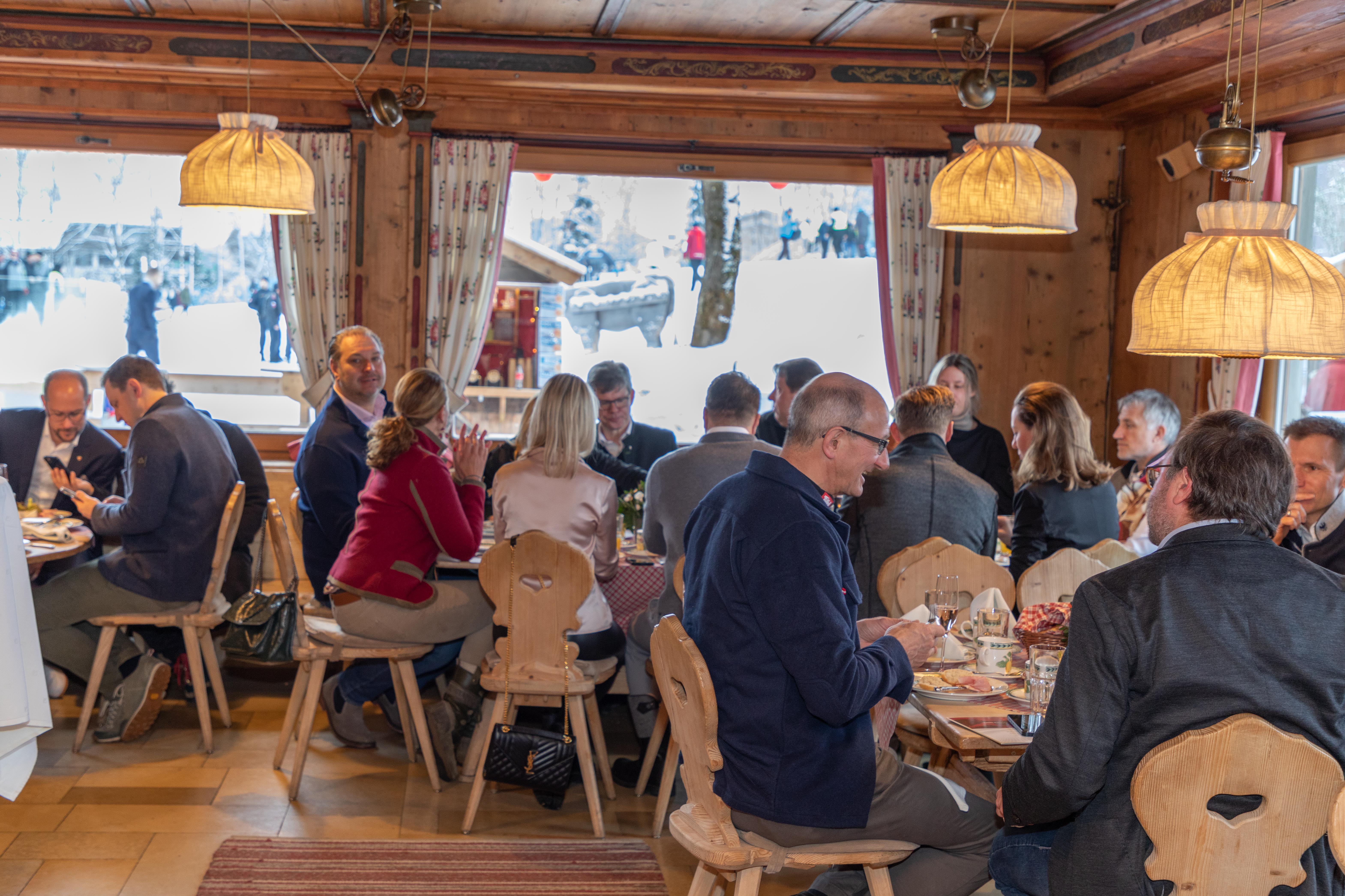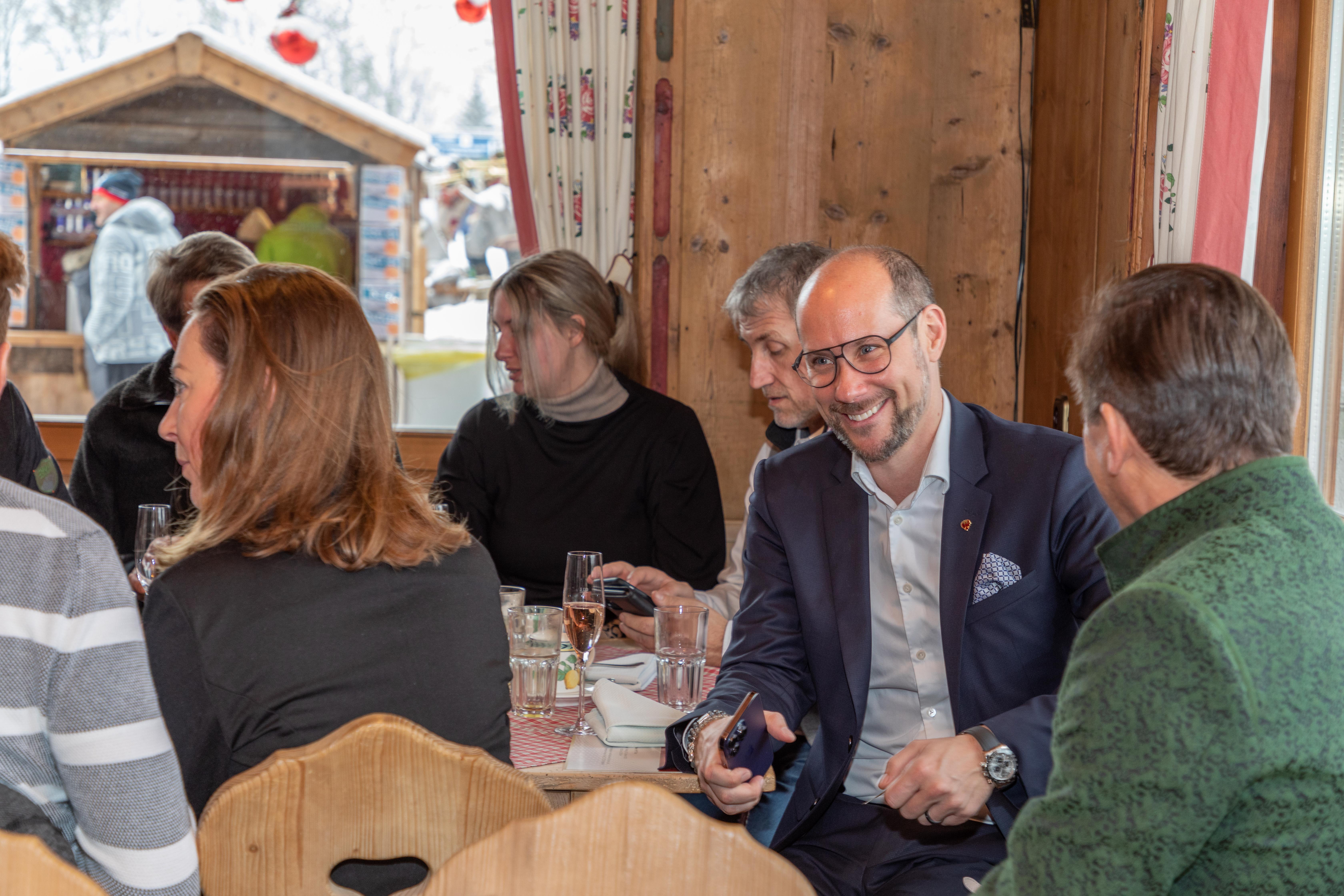 Armin Assinger, der gerade von der Pistenbesichtigung zu „Wien trifft Tirol“ kam, lieferte live einen Eindruck von der Hahnenkammabfahrt und gab eine Einschätzung über die Favoritenrolle ab. Beim Frühstück und einem Glas Sekt vom Fräulein Rose aus dem Wiener Weingut Mayer am Pfarrplatz mit dabei waren unter anderem: der Tiroler Wirtschaftslandesrat Mario Gerber, ORF-Generaldirektor Roland Weißmann, Wien Holding- GF Oliver Stribl, Staatssekretär Florian Tursky, A1 Telekom-CCO Enterprise Martin Resel, Anna und Christian Pletzenauer (Eigentümer Biologon), A1 Telekom-Direktor Marketing Communications Marco Harfmann, die Unternehmer Fritz Unterberger und Steinbacher Dämmstoffe-CEO Roland Hebel, Hutchinson Drei Austria-CEO Rudolf Schrefl, Harald Kräuter (ORF Technischer Direktor) und die ORF Sportchefs Hans Peter Trost und Martin Szerencsi, Stefan Gubi (GF Windhager), Vespa-Generalimporteur Josef Faber, Kurt Mann, (Großbäckerei Mann), der Kitzbüheler Bürgermeister Klaus Winkler, Sportmanager Herwig Straka, W24-GF Marcin Kotlowski, Martina und Karl Hohenlohe (Gault Millau), Gerhard Gucher (Direktor Vamed Vitality), Herbert Rieser (Key Account cafe+co), Markus Fischer (GF KNS Holding), Filmproduzent Oliver Auspitz, Katrin Brugger (WK Tirol), Jakob Kathrein (Koordinator für Tirol in Wien), Esther Mitterstiller (Landesdirektorin ORF Tirol), die Kommunikationsexperten Axel Ganster, Tomy Prantner und Michael Himmer sowie die Veranstalter Ralph Vallon und Raphaela Vallon-Sattler (GF Vallon Relations).