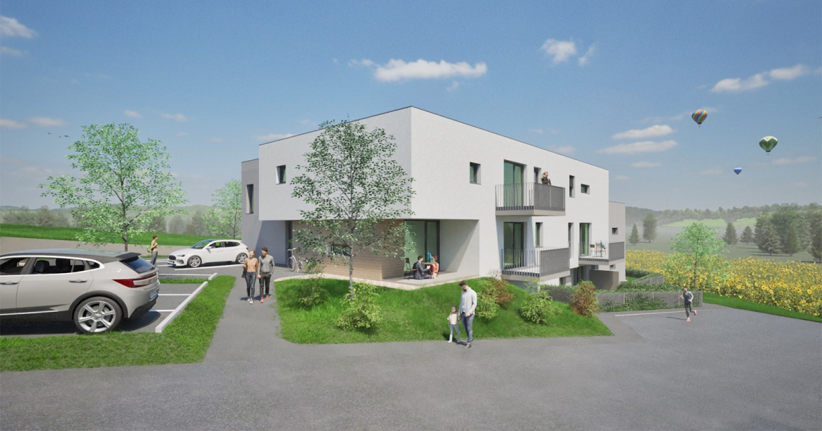 In sonniger Hanglage werden geförderte Mietwohnungen in Niedrigenergiebauweise realisiert – ein durchdachtes Konzept, das sowohl Junges Wohnen als auch Begleitetes Wohnen vereint.