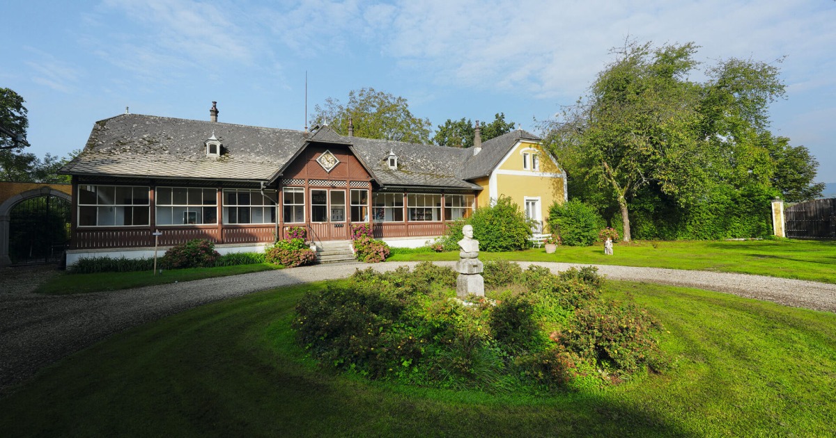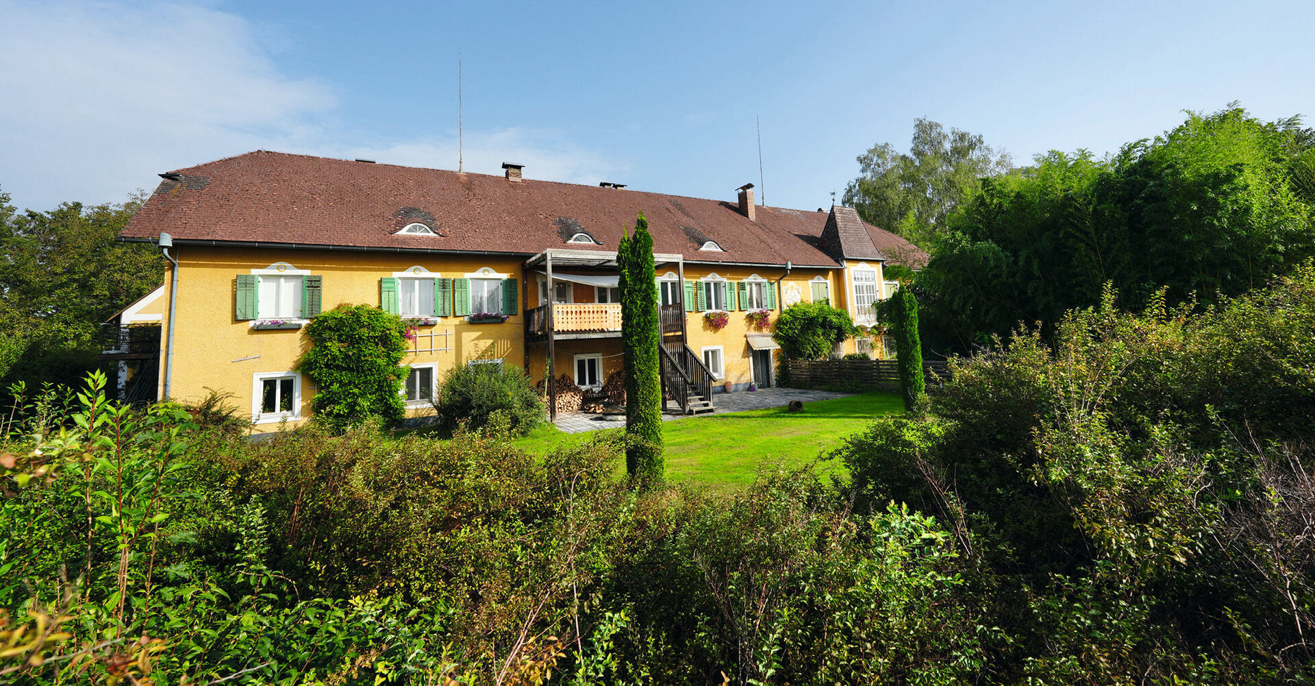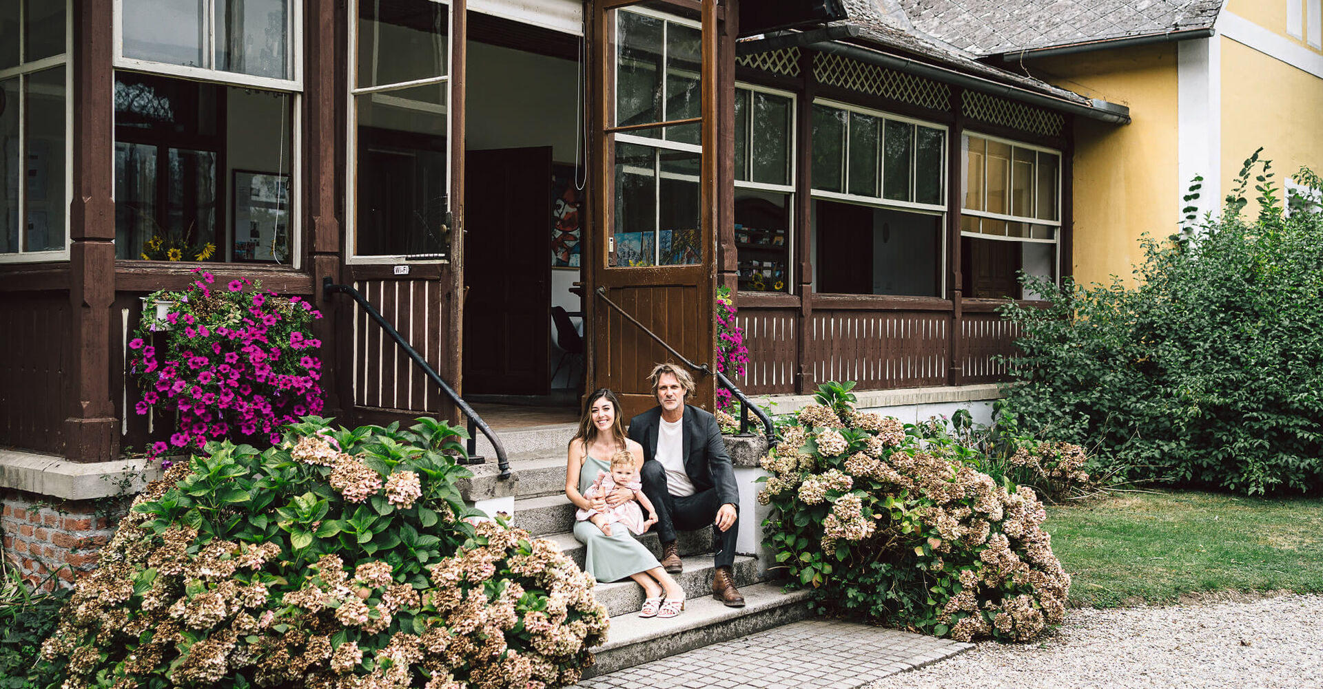 Bereits beim ersten Schritt durch das alte schmiedeeiserne Tor des Schlosses fühlt man sich sofort in eine andere Zeit versetzt. Vor dem Chalet, der ehemaligen Jagdvilla, in der sich heute Ferienwohnungen befinden, blühen die Blumen im Rondeau, in dessen Mitte die Büste des Urgroßvaters von Roland Taxis-Stieber – dem heutigen Besitzer – über das Geschehen wacht. „Vor genau 100 Jahren haben meine Urgroßeltern Curt und Monika Taxis von Bordogna und Valnigra das Schloss Pesenbach erworben“, erklärt der Kameramann und Filmproduzent bei einem Rundgang durch den Hof. Er selbst ist hier mit seinen sechs Geschwistern aufgewachsen und wohnt nun – nach fünf beruflichen Jahren in Wien – mit seiner Verlobten Lucia und der gemeinsamen Tochter Josephine wieder hier.