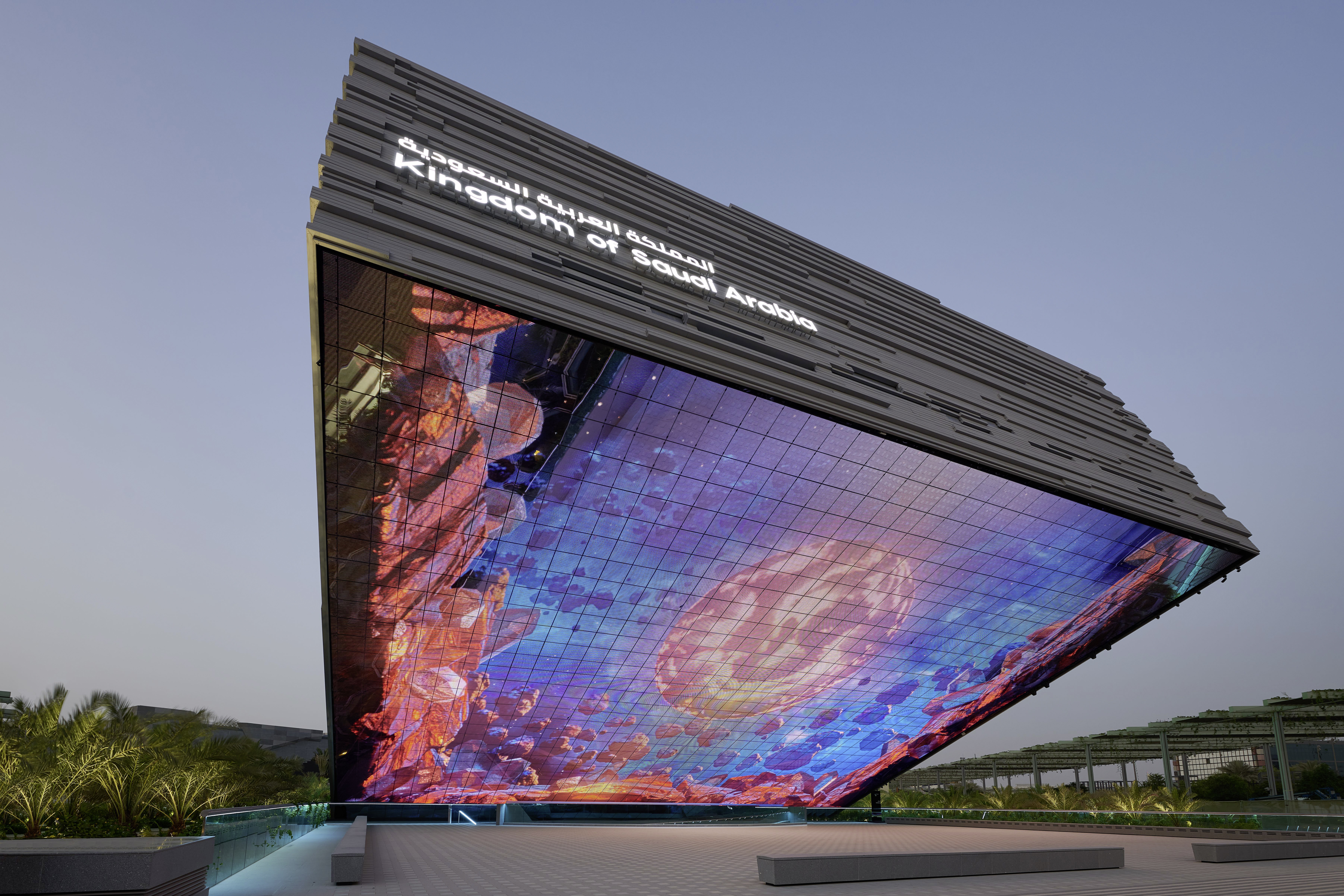 Mit einer Fläche von zwei Fußballfeldern und einer Größe von circa 13.000 Quadratmetern ist der Pavillon der Saudis der zweitgrößte Länderpavillon nach dem der Vereinigten Arabischen Emirate. Und an Superlativen bedarf es auch, wenn die von KLT umgesetzten technischen Lösungen beschrieben werden sollen. „Mit dem größten Spiegel-LED-Bildschirm mit 1.305,5 Quadratmetern, dem größten interaktiven Beleuchtungsboden mit 8.500 LED-Sonderleuchten und dem längsten interaktiven Wasserspiel von 32 Metern hat der Pavillon nicht nur bereits drei Guinness-Weltrekorde gebrochen, sondern spiegelt auch die Vergangenheit, Gegenwart und Zukunft des Königreichs Saudi-Arabien durch bahnbrechende Technologien wider. Zwei Auszeichnungen gehen dabei direkt auf das Design und die Konstruktion von KLT zurück“, erzählt Christian Hofer, geschäftsführender Gesellschafter & CTO bei Kraftwerk Living Technologies, und erinnert sich an den Start des Projekts.