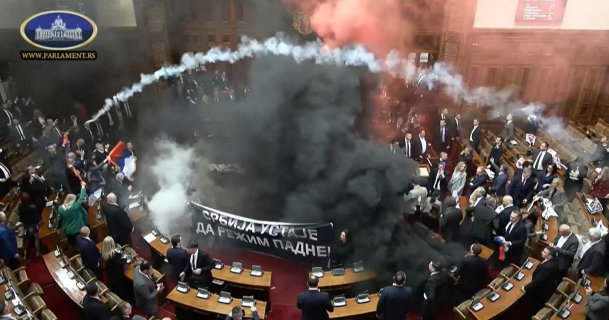 Zu Beginn der Frühjahrstagung ist es im serbischen Parlament zu heftigen Auseinandersetzungen gekommen. Nachdem die regierende Parlamentsmehrheit die Tagesordnung gegen die Vorschläge der Opposition angenommen hat, sind Rauchbomben im Sitzungssaal gezündet worden. Es ist zu einer Schlägerei zwischen Abgeordneten gekommen, während Eier und Wasserflaschen durch den Saal flogen.