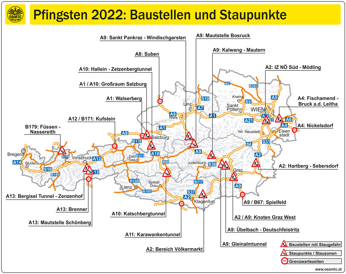 Erstmals werden heuer Abfahrtssperren für den Durchreiseverkehr in Salzburg schon zu Pfingsten aktiviert und auch von der Polizei kontrolliert. Außerdem gibt es Fahrverbote für Durchreisende auf mehreren Landstraßen in den Tiroler Bezirken Innsbruck, Innsbruck Land, Kufstein und Reutte von Freitag, 3. Juni, 07:00 Uhr bis Sonntag, 05. Juni, 19:00 Uhr Richtung Süden sowie von Samstag, 18. Juni, 07:00 bis Sonntag, 19. Juni, 19:00 Uhr Richtung Norden. Diese Fahrverbote betreffen alle Fahrzeuge, auch Motorräder, informiert der ÖAMTC.