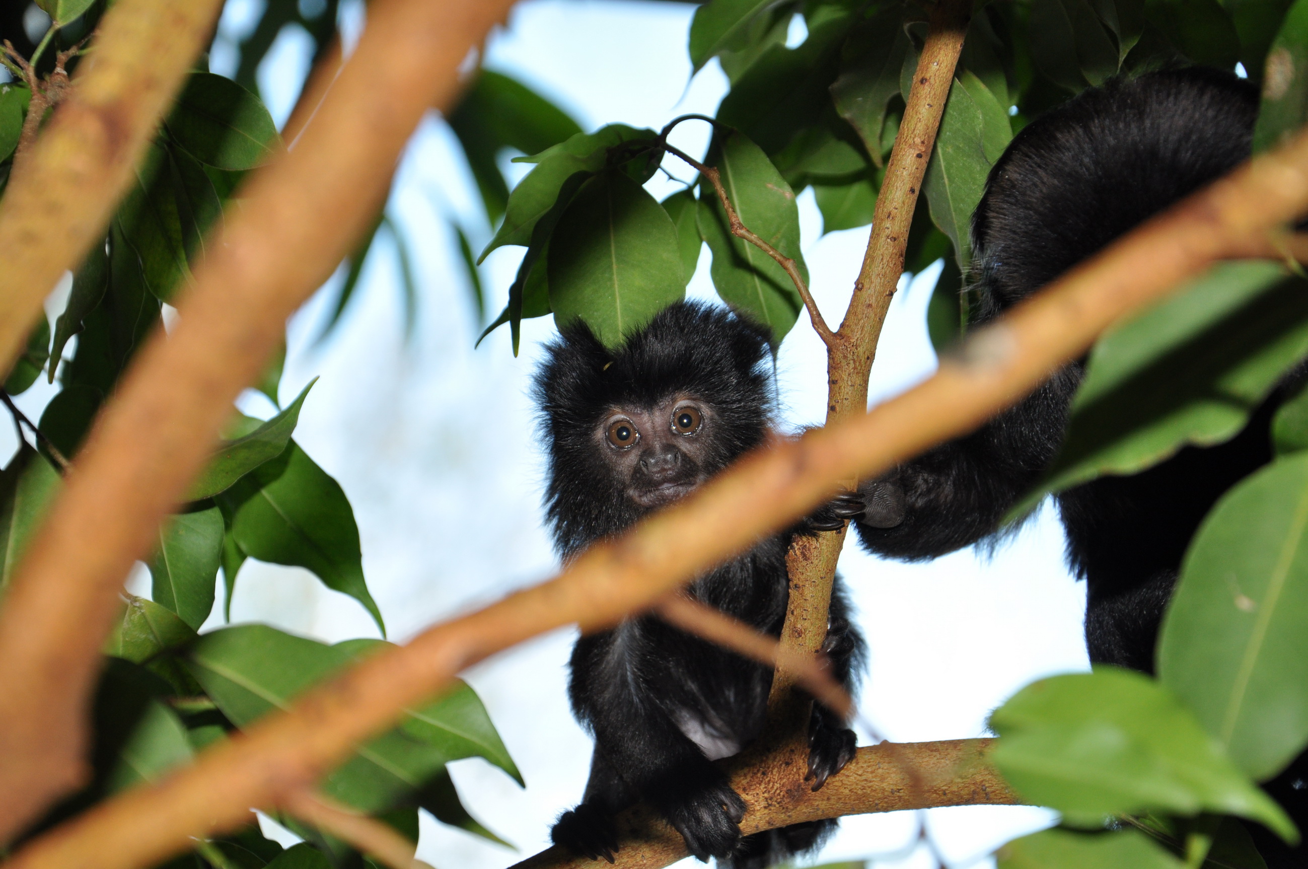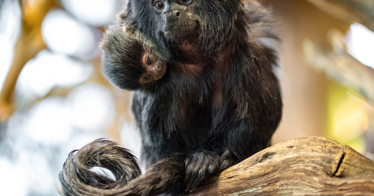 Manchmal kommt auch ein Braunrückentamarin des Weges und borgt sich das Junge für eine Weile. „Warum das die Springtamarine so wiederpruchslos hinnehmen, wissen wir nicht. Üblich ist so etwas bei Affen nicht und in der Regel ziehen da Affeneltern schon ihre Grenzen“, berichtet das Haus des Meeres.