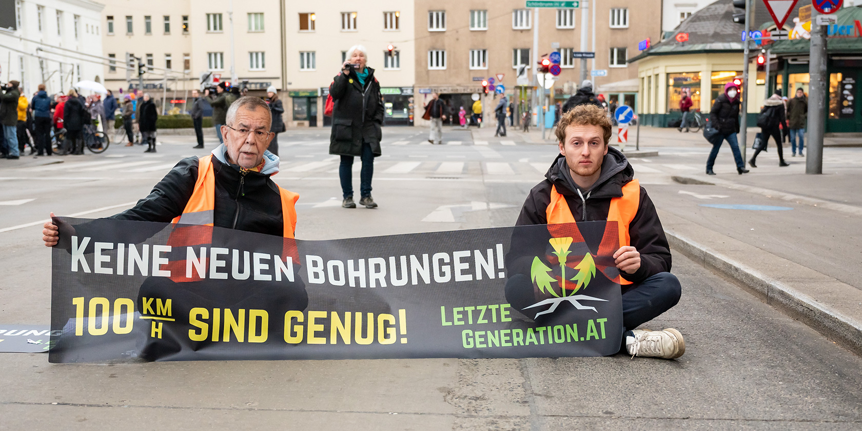 "Der gesunde Menschenverstand sagt uns doch, dass Superkleber kein Sprengstoff ist, auch wenn dies verantwortungslose Boulevardmedien immer wieder behaupten“, so der Bundespräsident. Er habe sich nun spontan entschlossen, selbst als Aktivist der "Letzten Generation"aufzutreten und sich – so es sein Terminkalender als Staatsoberhaupt zulasse – auch bei den kommenden Aktionen anzukleben.