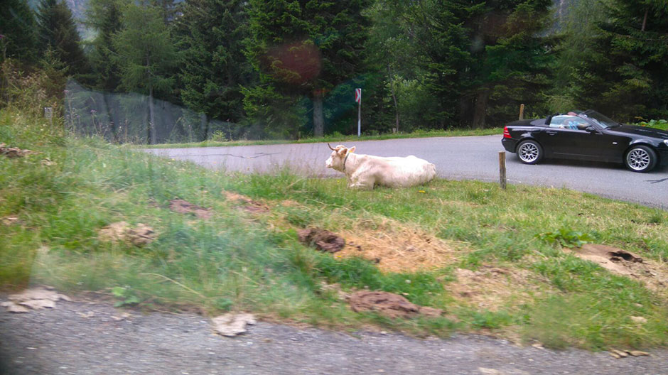 Für die Ennstal Classic hieß das damals: Schauer im oberen Murtal und ordentliche Regengüsse im Ennstal. Dazwischen liegt der Sölkpass, der mit 1.788 Meter Seehöhe gleich viel näher am Himmel und damit an den Regenwolken liegt. Bei Schönwetter lieben ihn die Motorradfahrer, die zum Leidwesen der Einheimischen und der Kühe mit ihren Zweirädern die Serpentinen hinauf- und hinunterbrettern. Bei Schlechtwetter meidet ihn jeder vernünftige Mensch. Schwere dunkle Regenwolken in den Bergen heißen so viel wie Matsch, Geröll und Bäche neben sowie auf den Straßen.