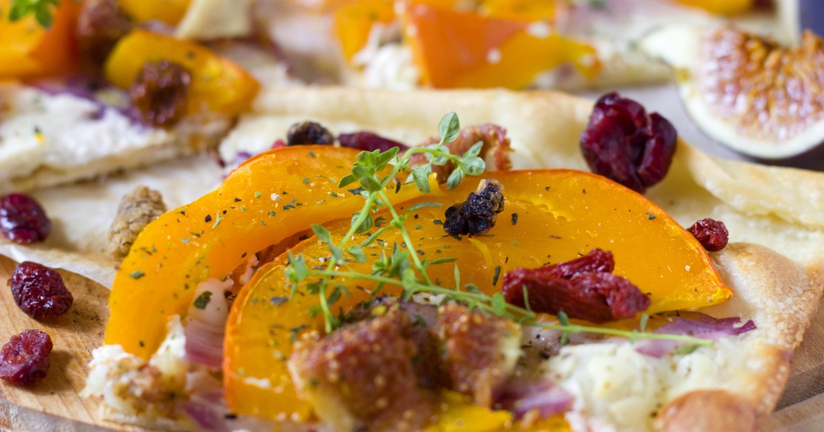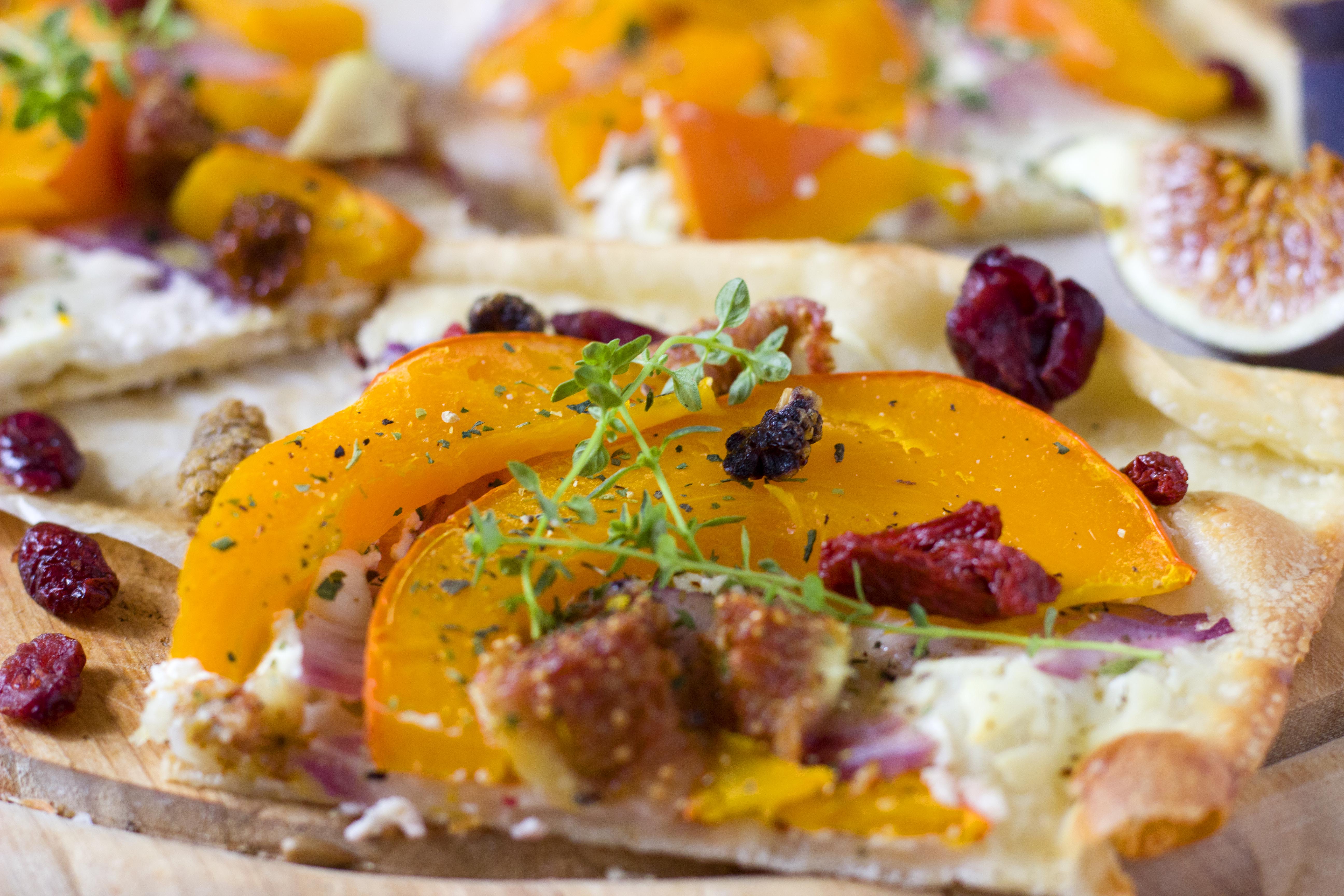 Herbstlicher Flammkuchen mit Kürbis und Feige