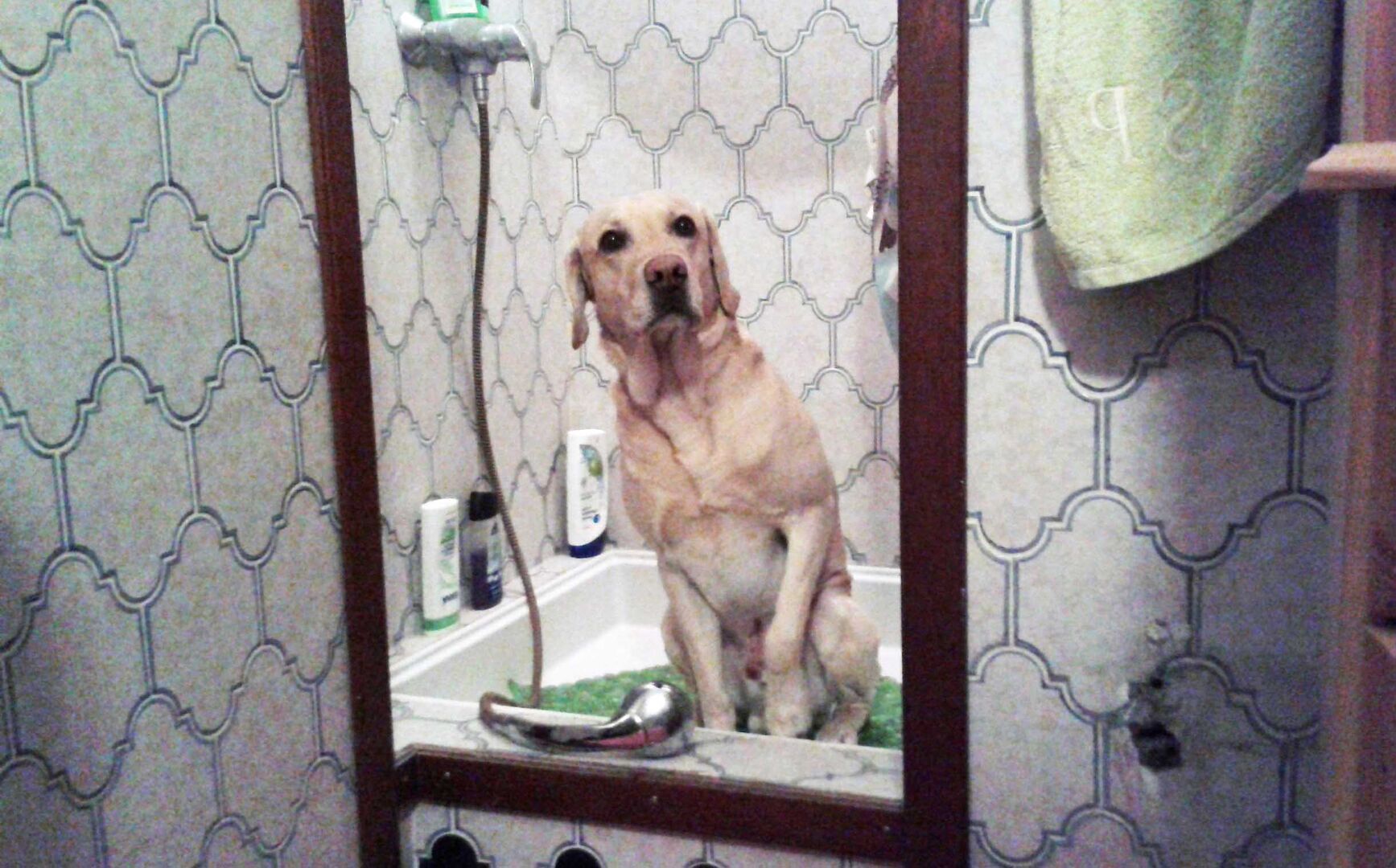 Ich gebe es zu: Vielleicht fallen die Spaziergänge bei nasser Witterung etwas kürzer aus als sonst, denn Aragon schlägt dann oft freiwillig den Weg zurück nach Hause ein. Dort begibt er sich inzwischen nur noch mit wenig Zögern in die Dusche, wo der gröbste Schmutz abgebraust wird.