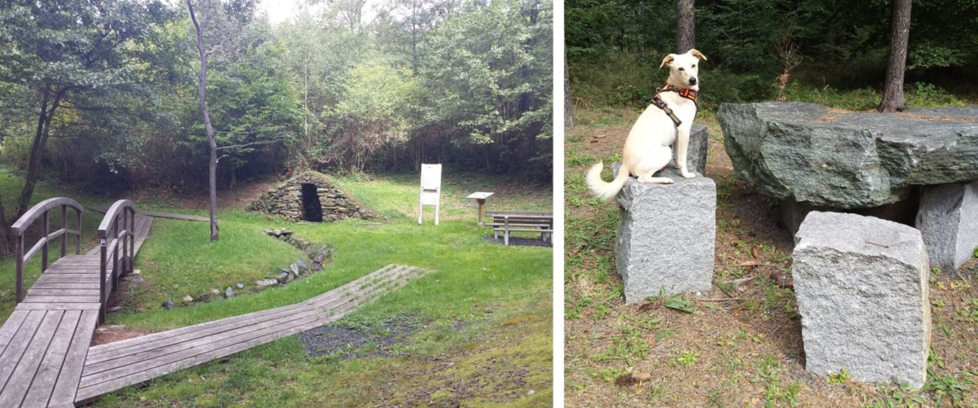 Weiter geht’s zum Königsbrunnen, einer Quelle an der die beiden Vagabunden ihren Durst stillten. Über Stege gelangt man durch das sumpfige Gebiet zu dem mit Steinen liebevoll eingefassten Brunnen. Anschließend führt der Weg vorbei am Sportplatz durch Föhrenwälder weiter zum Hendlstein, ein Rastplatz, an dem sie nach erfolgreicher Jagd mit Genuss ihre Leibspeise, gebratenes Hendl, aßen. Die Ruhe, die dieser Ort ausstrahlt, hat etwas Sagenhaftes, ein Kraftort durch und durch. Wir entscheiden uns ebenfalls eine Weile dort zu rasten, bevor wir mit unserer "Beute" zurückwandern.