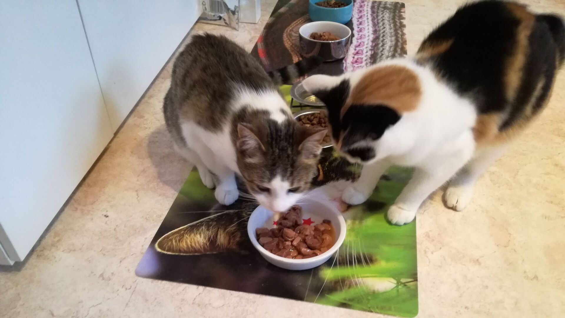 Ein ausführliches Gespräch mit dem Tierarzt führte schließlich zu folgendem Ergebnis: Ich kann jetzt beiden ein Nassfutter für Erwachsene geben. Als Trockenfutter behalte ich das "Junior" bei, denn dadurch erhält Carlos die Nährstoffe, die er braucht. Das Diätfutter habe ich weggeschmissen, dafür das Pulver unter das "normale" Futter gemischt – das tut Ella auch nichts, wenn sie davon isst. Und tata! Ein paar Tage später entdecke ich im Katzenklo ein Würstel von Carlos! Das musste ich natürlich gleich Freunde und Familie per WhatsApp mitteilen. Keine Angst, Foto habe ich keines geschickt! Mittlerweile sind zwei Wochen rum und Carlos’ Stuhlgang blieb fest. Ich bin erleichtert!