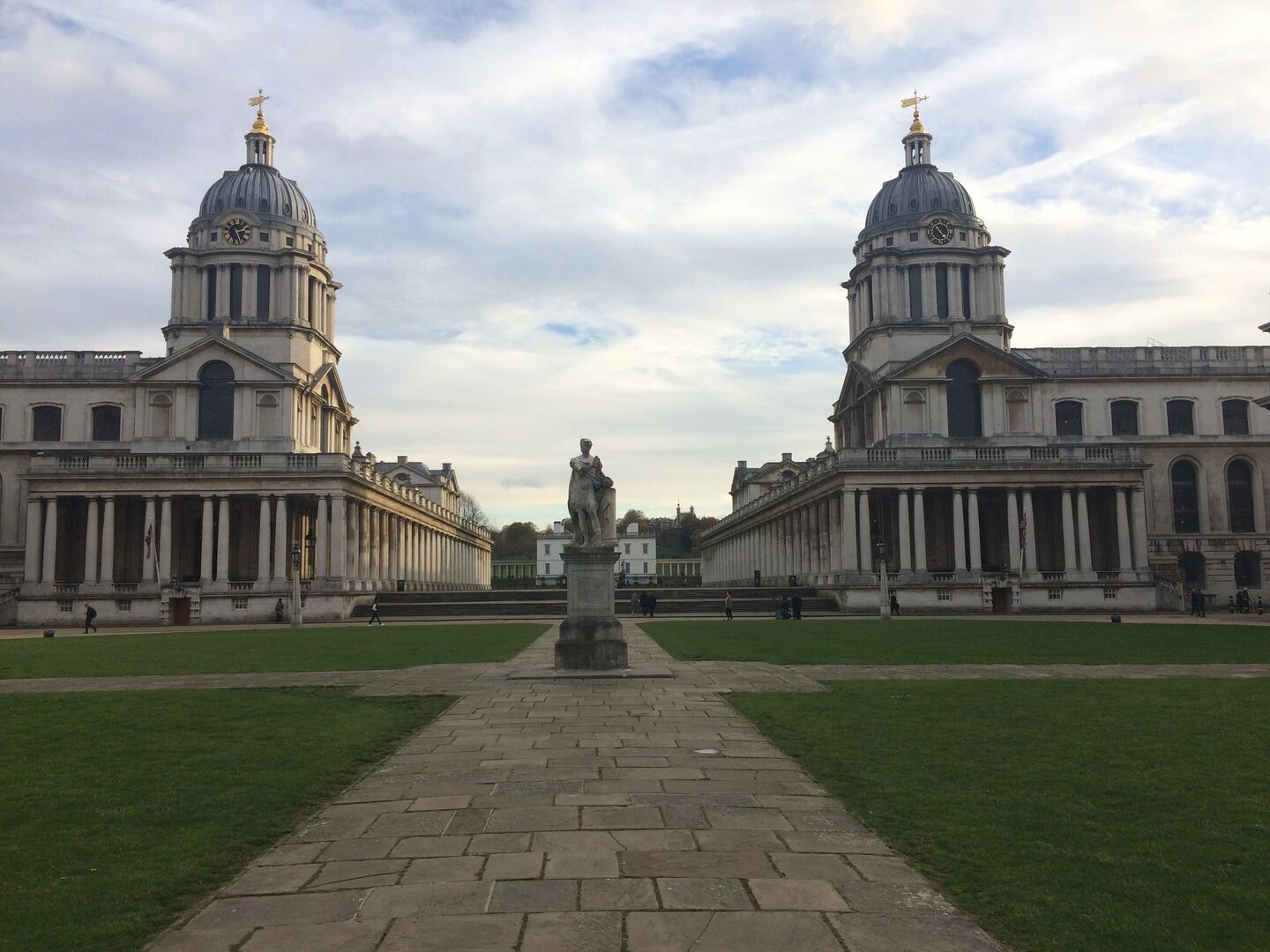 Nachdem ich alles gesehen hatte, ging ich weiter und kam schließlich bei der Greenwich University an. Das Gelände besteht aus mehreren, sehr altertümlichen Gebäuden, die direkt an der Themse liegen und auf der anderen Seite an einen Park angrenzen. Auch wenn ich bisher noch nicht dort war, hat es mich an Oxford erinnert. Um einen besseren Überblick zu bekommen, bin ich dann in den Park auf einen Hügel hinauf spaziert, wo sich auch das Royal Observatory, ein Museum und Planetarium befindet. Mir blieb wirklich der Atem weg. Nicht weil der Aufstieg auf den Hügel so anstrengend war (naja, ein bisschen auch deswegen), sondern weil mich eine atemberaubende Aussicht erwartete. Man konnte von dort oben nicht nur das Greenwich University-Gelände sehen, sondern schaute quasi auf ganz London hinab. Rechts die O2-Konzerthalle, geradeaus das Finanzzentrum Londons mit seinen Wolkenkratzern und links "The Gherkin" - typisch für die Skyline Londons mit seiner einzigartigen Form. Ich war wirklich begeistert. Und das Beste an der Sache: Fast keine Touristen. Das Gelände und der Park sind riesig. Das bedeutet, die wenigen, die sich hier her verirren, verlaufen sich, und man hat das Gefühl, den Ort ganz für sich alleine zu haben. Ein wunderbarer "secret spot", der mich besonders mit der unerwarteten Aussicht begeistert hat!