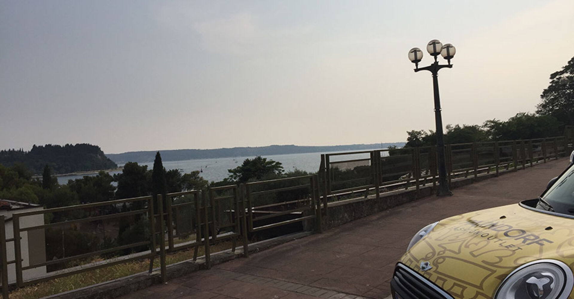 Später sehen wir: Der Mini steht direkt vor dem Hotel und darf wie wir die Aussicht auf die Bucht genießen. Er strahlt, frisch gewaschen vom slowenischen Sommersturm und glänzt goldgelb. "Am Abend", sagt mein neuer livrierter Freund, "kommt in Garage. Dann ist morgen kalt für Sie. Schönes Auto."