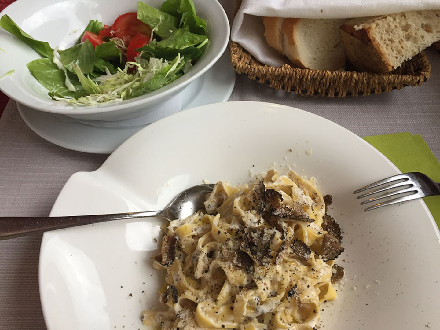 Kaum betreten wir das Restaurant, da werden wir schon gefragt: "Dobar dan! Tartufi?" In diesem südlichen Eck der Welt kommt man mit einer dreisprachigen Mischung aus Slowenisch, Italienisch und Zeigen bestens durch.