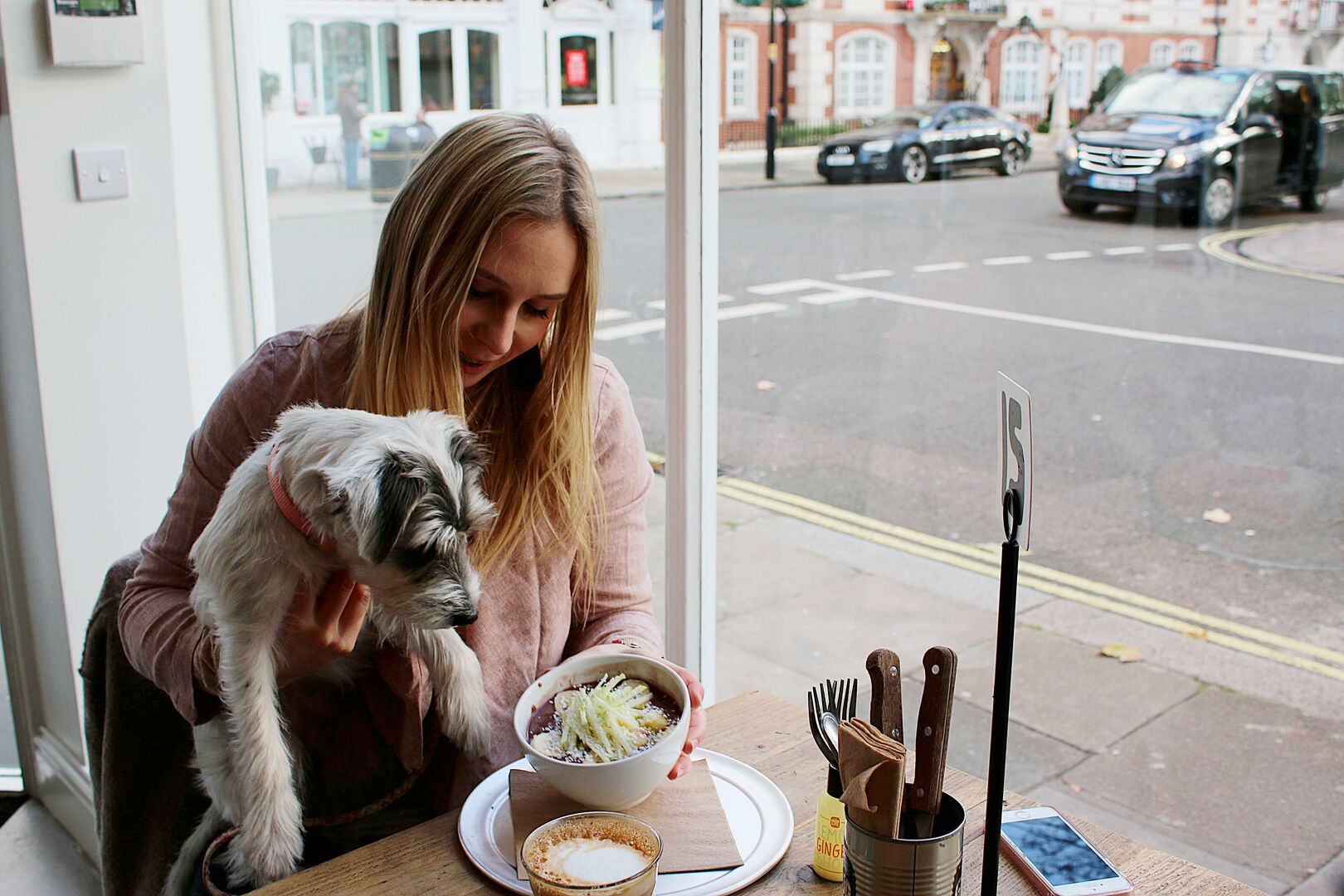 Ein hundefreundliches Café in London heißt zum Beispiel The Good Life Eatery, in welchem mein Frauchen ihre erste Açai Bowl aß.