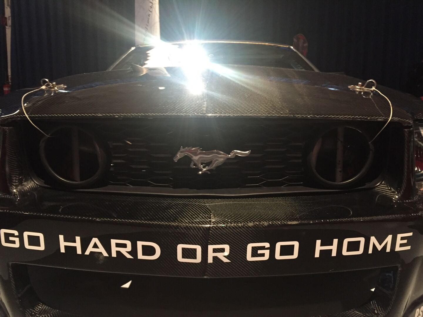 Einen rasanten Ford Mustang mit dem schlagkräftigen Motto "Go hard or go home"?