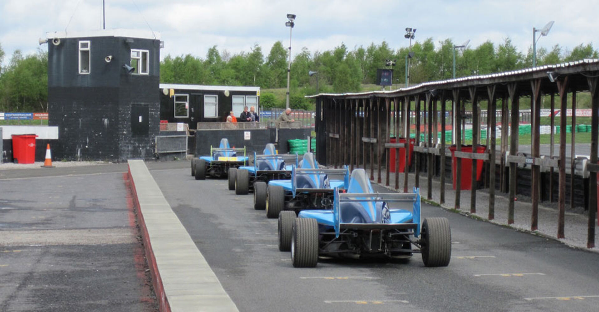 Am Renntag treffen fünf weitere Teilnehmer ein, fünf davon Männer. Wir bekommen Overalls, meiner ist der kleinste und innen aus Frottee. Jeans ausziehen, ich werde schwitzen, meint man. Im frostigen englischen Mai bin ich froh über ein wirklich warmes Kleidungsstück. Dazu noch Helm und Schuhe, und ich bin bestens eingepackt für mein Auto ohne Dach.
