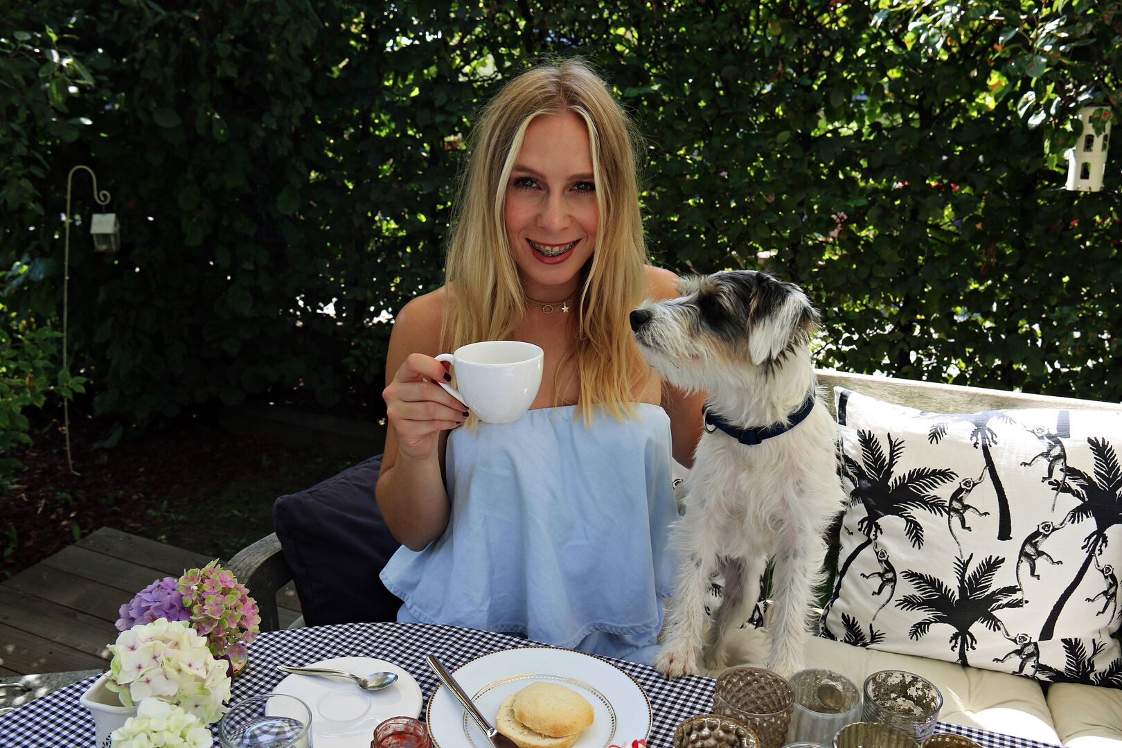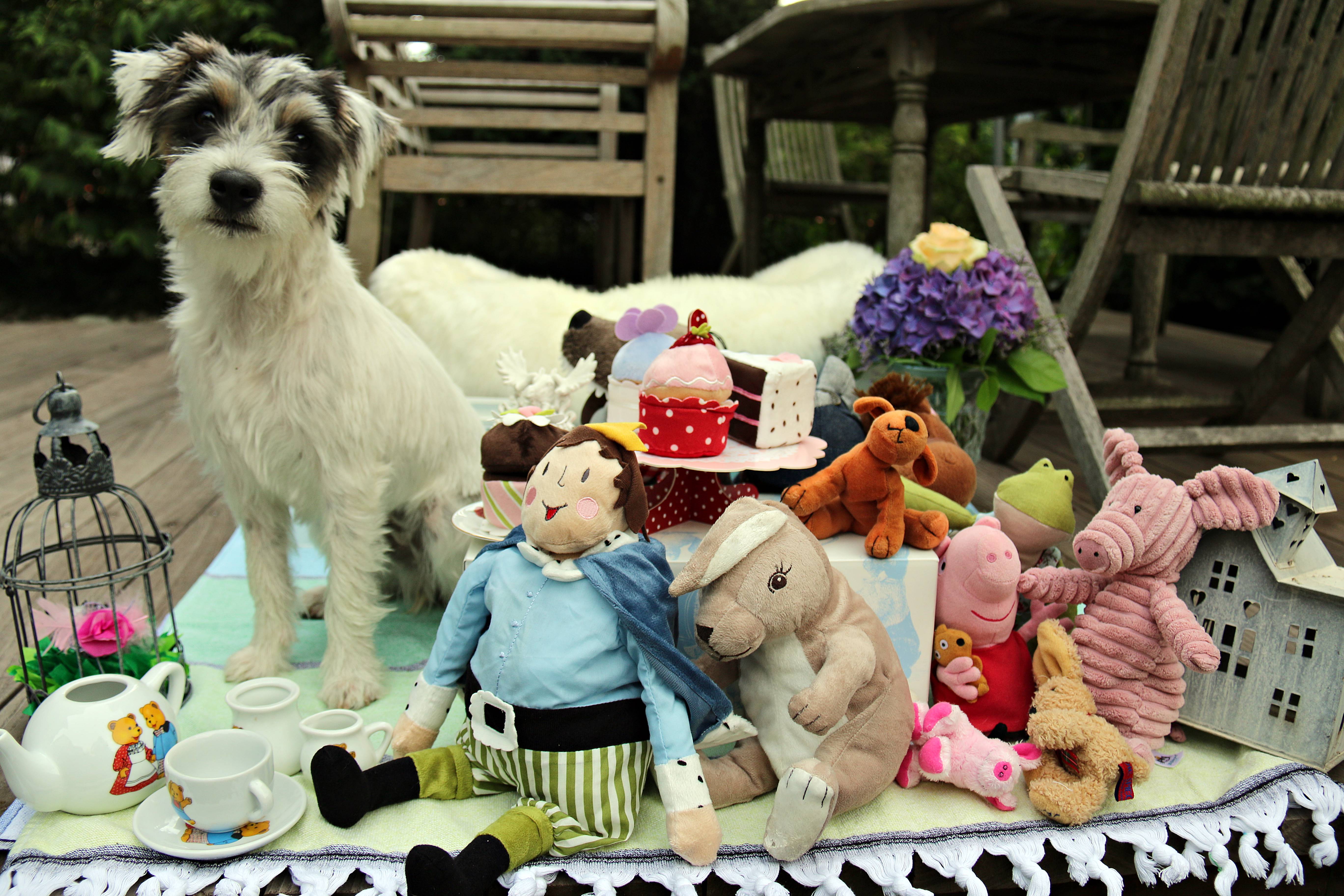 Damit auch ich so richtig in Stimmung auf die britische Insel komme, hat Anna kurzerhand eine kleine “tea party” für mich und meine Kuscheltierfreunde in unserem Garten, organisiert. Alle Stofftiere, die ich gerne mag waren da. Mein Frauchen hat mir nämlich erklärt, dass es in England üblich sei, am Nachmittag Tee zu trinken und so genannte "Scones" mit "Clotted Cream" und Erdbeer-Marmelade zu essen. Gesagt getan.