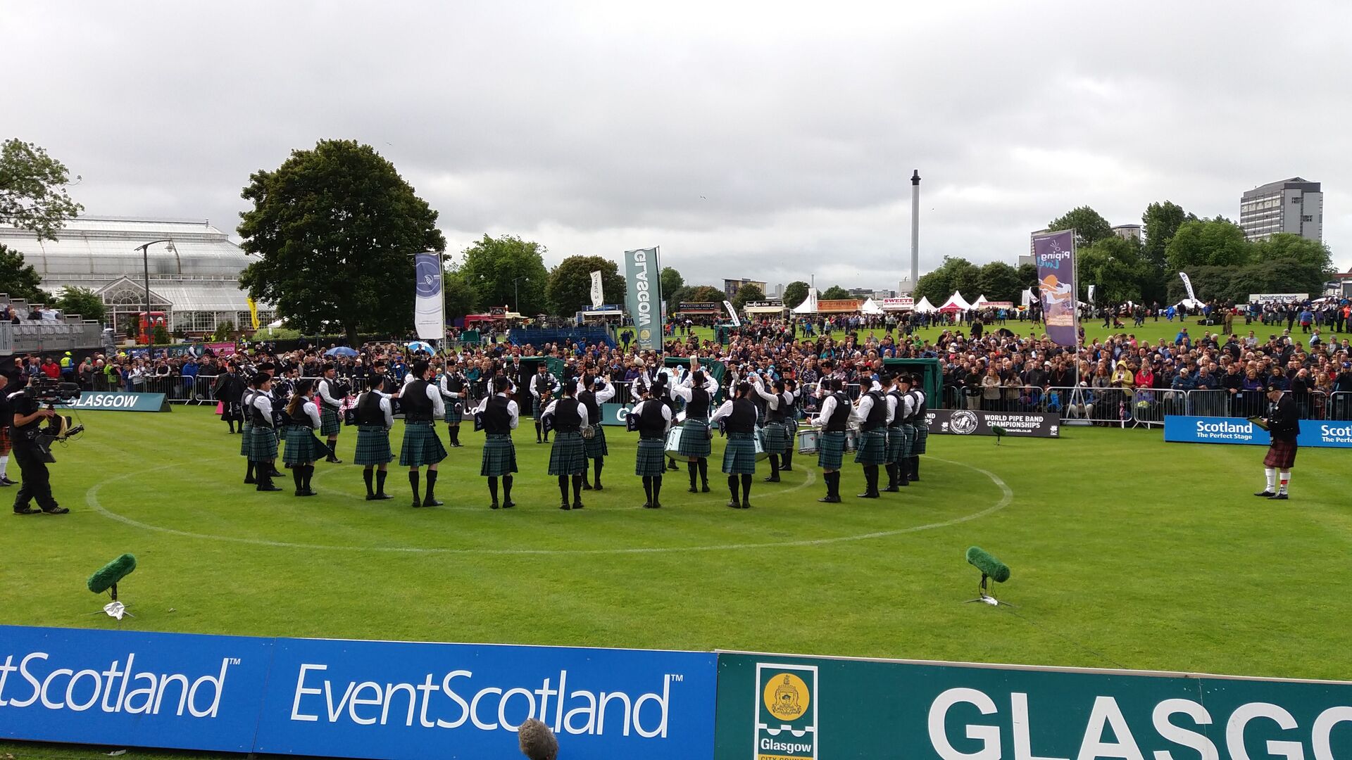 Jetzt steht das letzte Stückchen meines Road-Trips an. Es dauert nicht lange und schon bin ich in Glasgow angekommen. Von einem Dudelsack-Ereignis zum nächsten, eine ganze Woche lang. Trios, Solo-Auftritte, Band-Auftritte, alles super toll! Nervig ist nur der lange Weg, den man vom Hotel aus zurücklegen muss, um den Championships beizuwohnen. Und dann noch das schlechte Wetter. Regen ohne Ende. Zum Glück bin ich mit meinem Gewand halbwegs gut ausgerüstet, nachdem ich mir einen Pullover gekauft hatte, als mir doch etwas zu kalt wurde. Etliche Bands marschieren ein, spielen fehlerfreie Lieder und marschieren wieder aus, für mich ein einmaliges Erlebnis. Doch es kommt noch gigantischer: das "Finale". Unzählige Bands marschieren ein. Ich habe das Gefühl, als stünden tausende Dudelsackspieler vor mir. Der erste Ton erklingt, alle anderen stimmen mit ein. Atemberaubend.