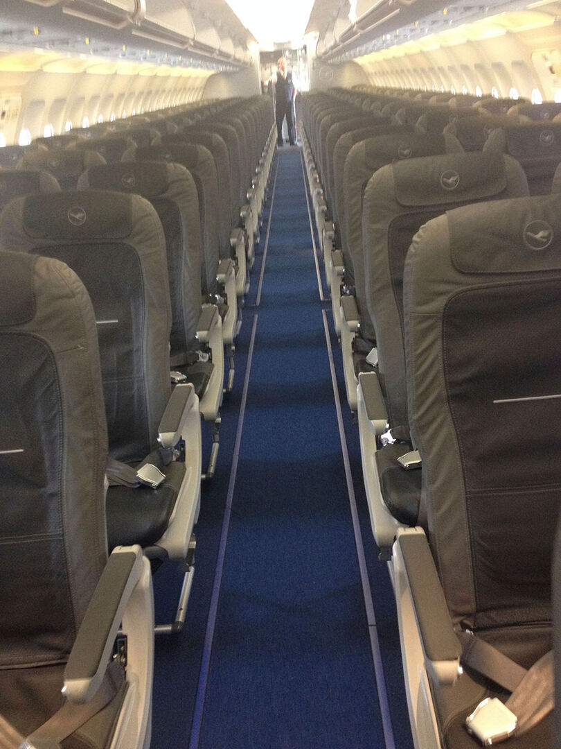 Kaum eingestiegen beginnt der Ellbogenkampf um die Mittellehne. Der hinter der tritt dir ungehemmt in die Nieren, während der vor dir seinen Sitz in die maximal mögliche Liegeposition bringt. Gestresst und ungehalten sitzen Passagiere wie Hühner in Legebatterien auf zu engem Raum und beginnen aufeinander herumzuhacken. Oder noch schlimmer: Sie beginnen sich mit dir zu unterhalten.