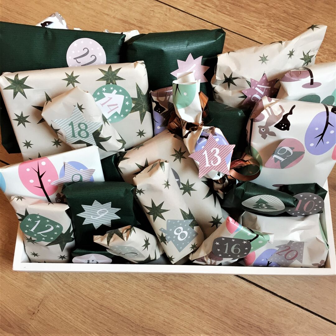 Ich liebte es als kleines Kind jeden Tag ein Säckchen öffnen zu dürfen. Mal gab es ein paar Schillinge (da freute man sich über einen 5-Schilling-Schein - heute sind dies weniger als 0,50 Cent), mal ein paar Stücke Schokolade. Der Do It Yourself-Kalender bekommt einfach eine individuelle Note und kann auf das eigene Kind und seine Vorlieben bezüglich Knabbereien oder Spielsachen abgestimmt werden. Natürlich gilt hier für mich als Mama, keine Unmengen an unnötigen Kleinkram zu kaufen, sondern mit tollen Holzpuzzles, Holzinstrumenten wie z.B. einer kleinen Pfeife seine Motorik zu fördern und ihn mit seinen Lieblings- Biokeksen zu überraschen.