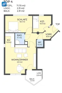 Die ca. 72 m2 große, wunderschöne 3 Zimmer Wohnung befindet sich im 1. Stock in einem 9 Parteien Haus, in einer kleinen Siedlung, etwas außerhalb der Gemeinde Koppl. Die Ausrichtung des ca. 2,3 m2 großen Balkons/Loggia ist S/W-seitig. Die zentrale Lage und die Nähe zu Salzburg bieten in jeder Hinsicht eine perfekte Infrastruktur, wie Einkaufsmöglichkeiten, Kindergarten, Schulen, Ärzte, öffentliche Verkehrsmittel bzw. Verkehrsanbindungen, ... usw. Auch sind genügend Besucher-Parkplätze vorhanden.