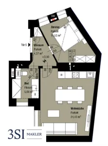 - Großzügiges Wohnzimmer mit ca. 24 m² – ideal für Wohnen und Essen in einem