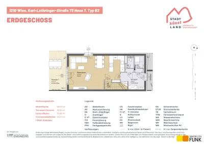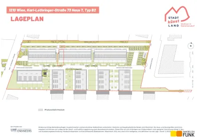 Das Reihenhaus 7 befindet sich in der Karl-Lothringer-Straße 73, 1210 Wien und wird auf einem ca. 122 m² großen Eigengrund errichtet. Seinen künftigen Bewohnern bietet es zudem eine komfortable Wohnfläche im Ausmaß von insgesamt ca. 125 m², angeordnet auf drei Geschoßen mit 5 Zimmern, 2 Toiletten, einem großen Badezimmer, dem Technikraum und einem Abstellraum, sowie einer südseitig ausgerichteten Terrasse mit ca. 14 m², die sich zu einem gemütlichen Gartenbereich mit ca. 15 m² öffnet. Im Dachgeschoß befinden sich zudem zwei Dachterrassen mit ca. 10 m² und 8 m². Diesem Reihenhaus ist ein Parkplatz direkt vor der Haustüre zugewiesen. Der Kaufpreis für den KFZ-Platz beträgt 19.000,00 € .