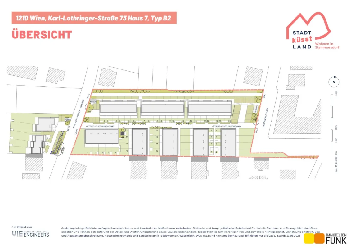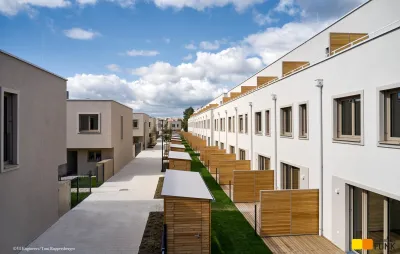 Das soeben fertiggestellte Neubauprojekt „STADT küsst LAND“ ist ein Bauvorhaben von VI-Engineers Bauträger GmbH & Co KG und entsteht zentrumsnah in Stammersdorf auf einem ca. 10.000 m² großen Areal, eingebettet zwischen Brünner Straße und Jedlersdorfer Straße in 1210 Wien. Es umfasst insgesamt 46 freifinanzierte Reihenhäuser mit Eigengärten und Terrassen sowie 53 zugewiesene PKW-Stellplätze mit nachrüstbarer E-Lademöglichkeit. Ansprechende Grundrisse, eine werthaltige Qualität dank Ziegelmassivbauweise, ein nachhaltiges Energiekonzept mit hauseigener Luftwärmepumpe und Photovoltaik-Anlage am Dach, eine hochwertige Ausstattung wie Fußbodenheizung, außenliegender Sonnenschutz mit Elektroantrieb, Eichenparkettböden und Feinsteinzeug zeichnen zudem das moderne Projekt aus. Alle Bilder: © VI-Engineers/ Toni Rappersberger. Fotos Innenräume: Musterhaus. Machen Sie sich selbst ein Bild- wir führen Sie gerne durch die Häuser.