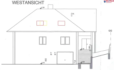 - Dämmung: Kellerdeckendämmung (8 cm), Spitzbodendämmung (12 cm Mineralwolle), Fassade mit Wärmedämmverbundsystem (ca. 5 cm)