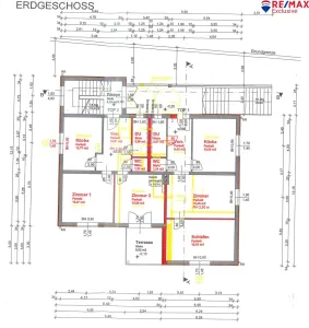 - Obergeschoss Top 3 (ca. 126,44 m²): 2 Schlafzimmer mit Schrankraum, großzügiger Wohnküchenbereich, Abstellraum, Vorraum, Bad, WC