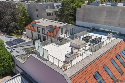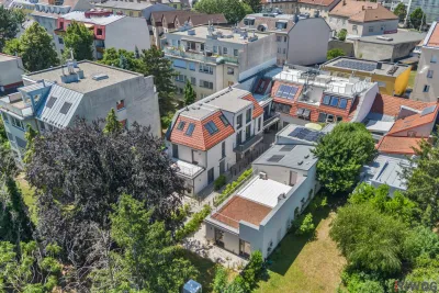 Eingebettet im grünsten Bezirk Wiens (Hietzing) in einer ruhigen Einbahnstraße besticht dieses ehemalige Fuhrwerkerhaus durch seinen Mix aus traditioneller Architektur - aber neu interpretiert - mit effizienten Grundrissen und großzügigen Freiflächen und einer sehr hochwertigen Ausstattung.