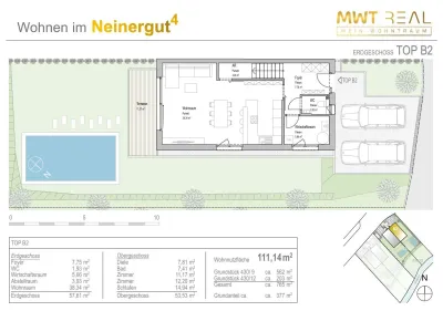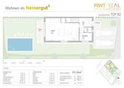 Erfahren Sie modernes Wohnen und Leben, gepaart mit großzügig angelegten Eigengärten, und genießen Sie das sanfte Rauschen des Grünbaches. Lichtdurchflutete Wohnräume durch gezielte Sonnenausrichtung, vielfältiges Raum- und Platzangebot, sowie die Einzigartigkeit des Grundstückes, runden dabei das Ambiente Ihres Wohn(t)raumes ab.