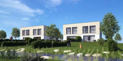 Umgeben von ländlicher Atmosphäre und idyllisch am Grünbach mit eigenem Bachzugang gelegen, entstehen zwei moderne Doppelhäuser mit weitläufigen Gärten zum Wohlfühlen.