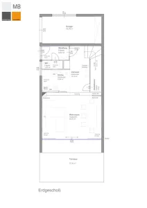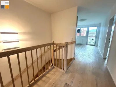 Raumaufteilung: EG: Vorzimmer mit Gäste-WC, Abstellraum/Speis, offener Wohn-/Essbereich mit Zugang zu Terrasse & Garten, offene Küche, Zugang zur Garage. OG: 2 Schlafzimmer + offener Wohnbereich (vorbereitet für 3. Zimmer), großes Bad mit Eckwanne, Dusche, Doppelwaschbecken, WC, Waschmaschinenanschluss. Südbalkon von 2 Zimmern begehbar, Dachboden über ausziehbare Leiter erreichbar. Vorbereitung für Kachel-/Schwedenofen vorhanden.