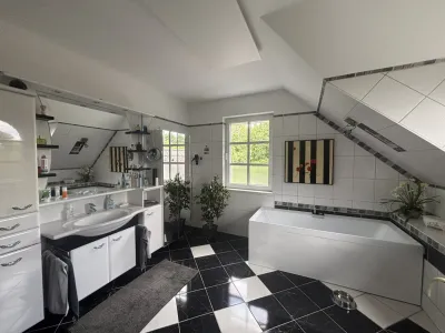 Die hochwertigen Materialien, von den edlen Fliesen bis zum warmen Parkett, verleihen dem Haus einen stilvollen Charakter. Die Fußbodenheizung (Gas) bzw. die Infrarotdeckenheizung sorgen für wohlige Wärme an kühlen Tagen. Die beiden Bäder, eines davon mit Fenster, bieten Ihnen den Komfort, den Sie verdienen.