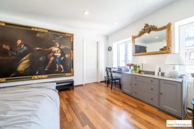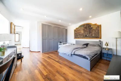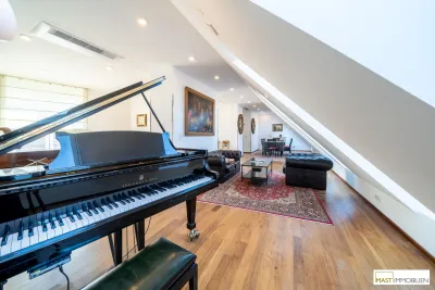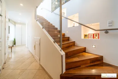 Dieses außergewöhnliche Anwesen mit ca. 268 m² Wohnfläche und Dachterrasse mit insgesamt über 90 m² kombiniert Eleganz und Konform. 2006 wurde der Altbestand aufgestockt und dadurch diese einzigartige Familienwohnung geschaffen.