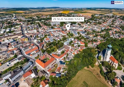Besser geht´s nicht - ZUM JUNGBRUNNEN! Dieses großartige Neubau-Projekt befindet sich direkt am Mistelbacher Hauptplatz - Leben im Herzen der Stadt! Profitieren Sie von einer unglaublich tollen Infrastruktur, quasi alles was das Herz begehrt befindet sich ums Eck und ist fußläufig erreichbar. Verschiedene Banken, eine Apotheke, mehrere Bäckereien für das frische Gebäck in der Früh (auch am Sonntag), Supermärkte, Drogerien, ein Friseur uvm. befinden sich rund um den Hauptplatz und nur wenige Gehminuten entfernt. Öffis: Busbahnhof am Hauptplatz / Wenige Minuten zum Bahnhof (REX 2, S2) für eine perfekte Anbindung an die Nachbarorte bzw. ca. 40 Minuten nach Wien