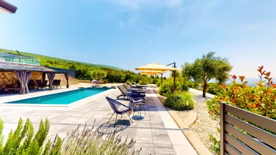 In der idyllischen Hügellandschaft der Region Knapici, eingebettet in die stille Schönheit Ostistriens und mit spektakulärem Panoramablick über die Kvarner Bucht und die Lagune von Raša, liegt ein Juwel zeitgenössischer Architektur: die Rajska Kuca. Diese neu strukturierte Luxusimmobilie in Istrien mit Meerblick vereint mediterrane Leichtigkeit mit ökologischer Verantwortung und bietet nicht nur ästhetisches Wohnen, sondern auch ein außergewöhnlich attraktives Renditeobjekt in Kroatien.