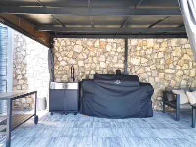 Hochwertige BBQ-Area mit voll ausgestatteter Außenküche (ca. 10 m)
