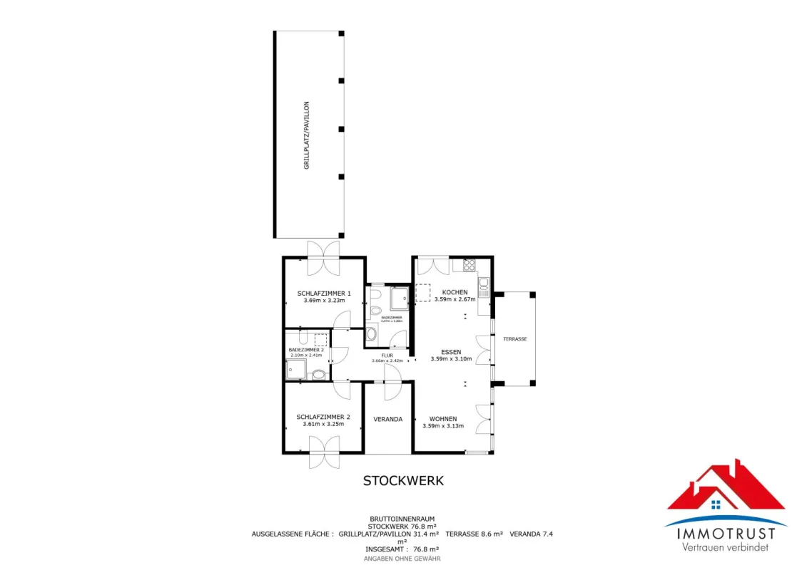 Im Zuge einer durchdachten Neustrukturierung wurde das Anwesen in zwei unabhängige Häusern aufgeteilt – jedes mit eigenem Zugang, individueller Privatsphäre und exklusiver Ausstattung. Die hier angebotene Wohneinheit erstreckt sich über 76,8 m² Wohnfläche und liegt auf einem ideal geteilten Grundstück von 821,5 m². Ein Carport-Stellplatz ist der Einheit zugeordnet.