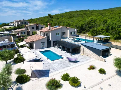Inmitten einer der exklusivsten Villensiedlungen Istriens, erhebt sich diese außergewöhnliche Villa in der charmanten Ortschaft Stanišovi, unweit des historischen Städtchens Labin und der azurblauen Küste der Adria. Die Immobilie liegt in einer privaten, architektonisch harmonisch gestalteten Siedlung mit lediglich acht neu errichteten Villen, zu der ausschließlich die Eigentümer Zutritt haben. Die Zufahrt wird nach Abschluss aller Bauarbeiten durch ein elektrisches Eingangstor mit Fernbedienungssystem kontrolliert, wodurch höchste Diskretion und Sicherheit garantiert sind. Diese exklusive Wohnanlage befindet sich in ruhiger Hügellage und verbindet auf elegante Weise moderne Lebensqualität mit der Ursprünglichkeit der istrischen Natur. Die Umgebung besticht durch ihre mediterrane Vegetation, sanfte Hügellandschaften und einen unverbauten Blick bis zur türkisfarbenen Küste der Kvarner Bucht. Die Zufahrtswege werden hochwertig asphaltiert, was die infrastrukturelle Qualität der Siedlung zusätzlich unterstreicht. Die klare Architektur der Villen und das durchdachte Raumkonzept dieser Immobilie ermöglichen sowohl eine getrennte Nutzung zweier Wohneinheiten als auch die Zusammenlegung zu einem großzügigen Familienanwesen – ideal für Mehrgenerationennutzung oder als Investment in die Ferienvermietung. Die Lage in der Gemeinde Raša, einer geschichtsträchtigen Region Istriens, ist reich an kulturellen Einflüssen und landschaftlicher Vielfalt. Die Nähe zu Labin, einer Künstlerstadt mit venezianischem Charme, sowie zu den malerischen Stränden von Rabac oder der romantischen Altstadt von Pula, macht diese Immobilie zu einem strategisch klug gewählten Rückzugsort mit exzellentem Erholungswert. Stanišovi liegt gut angebunden, aber fernab des touristischen Trubels – ein Ort, der bewusst für Menschen geschaffen wurde, die Ruhe, Qualität und Privatsphäre suchen.