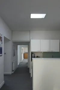 Das Co-Working-Büro mit einer Gesamtfläche von 200 m² überzeugt durch seine zentrale Lage, die gute Verkehrsanbindung und eine angenehme, ruhige Arbeitsatmosphäre.