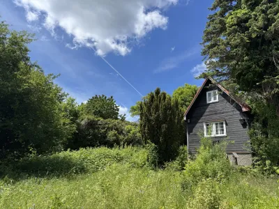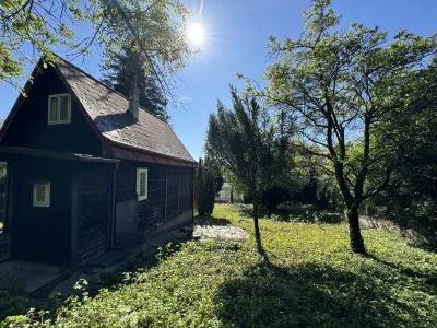 Auf dem Grundstück befindet sich eine Gartenhütte aus dem Jahr 1957, die mit den nötigen Modernisierungsmaßnahmen ideal als Sommerrefugium genutzt werden kann.