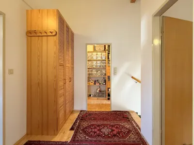 Das Vorzimmer ist zwar kompakt, aber dennoch praktisch – genug Platz für Jacken, Schuhe und all die kleinen Dinge, die sonst gerne mal chaotisch in der Ecke landen.